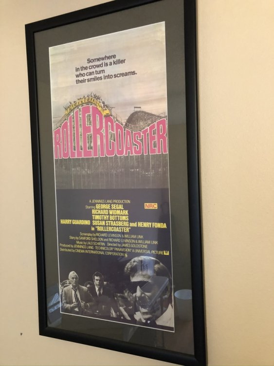 I have a TON of stuff but thought I would share two of my favorite ones! A framed poster from Rollercoaster that I believe was used in Australia. I love how they use the train from the Revolution but on wooden coaster track! Definitely Australia due to the NRC rating: NRC for "not recommended for children under 12" (previously X, A or not suitable for children. This later became PG for "parental guidance") Jurisdiction: Australia My friend got me this from eBay. -
