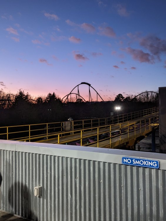 Happy New Year! Few closing day thoughts... The new train on Nitro (D train) runs noticably faster than the others. In the morning I rode A train and it was moving so slow that there was literally no airtime in the first half. The good thing was it was moving so slow that the mid course didn't engage at all, so it absolutely hauled through the bunny hills with excellent ejector all the way through. But then I rode D train and it literally felt like it was a hot summer day. Big airtime on every hill even in the middle of the train and you could really feel the bone crushing positives in the helix. And it just kept getting faster right up to closing even with temps in the 30s and a whipping wind. Easily the best rides I've ever had on it. Marathoned for the last hour and finished with 17 Nitro rides, a great edition of this New Year's Day tradition. Between the jaw dropping sunset rides and the pitch black night rides it just doesn't get any better. Got the last train of the year in the front row (I think this is the 3rd year in a row I've been on last train). Batman running slightly slow in the cold, but always fun riding many consecutive times without getting up. Row 7 had a bad wheel, but 6 and 8 were fine. Dark Knight is using the preshow again which I haven't seen used in years. Only problem is the preshow is so long that the folks that are let into the station are all cycled through and then they just run empties for a while even though there's a 10 minute wait outside. With Ka out of the picture, Devil might be the biggest piece of shit in the park maintenance wise. I did get two rides on it, but two other times I was on the train, it advanced to the end of the station, and then they never sent it and made everyone get off. It's really not the biggest problem ever when the ride is a walkon, but what pisses me off is they get $2 for a locker every time and then you don't get that money back when the breakdown occurs and you never end up riding it. It's a big reason why I rode Ka way less than I should have in it's lifetime and honestly there's a lot of times where I don't even bother with Devil and just ride Nitro more instead. Hopefully the free double sided lockers make their way over here. Park was very dead overall, flats were typically a walk on (and at times not being ridden at all with the ride ops just sitting around waiting, I got zen rides on Jolly Roger and Skyscreamer). But kudos to the park for having everything open on that side of the park (except Harley Quinn for obvious reasons). It was sad looking over at Ka knowing it seems to have officially been sentenced to death sometime in February, and that no one will ever see it from inside the park again. Sounds like opening day will likely be March 15th and employees seemed pretty confident that Flash will open with the park. If that is the case I hope to find myself down there opening weekend!