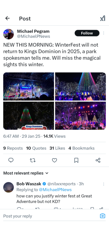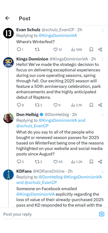 Kings Dominion has officially cut WinterFest starting this year. Of course they've been selling season passes for months with "includes Haunt and WinterFest" listed right at the top, but hey... I'm sure once they decide they haven't already taken enough away from Great Adventure then HITP will probably go away there too. -