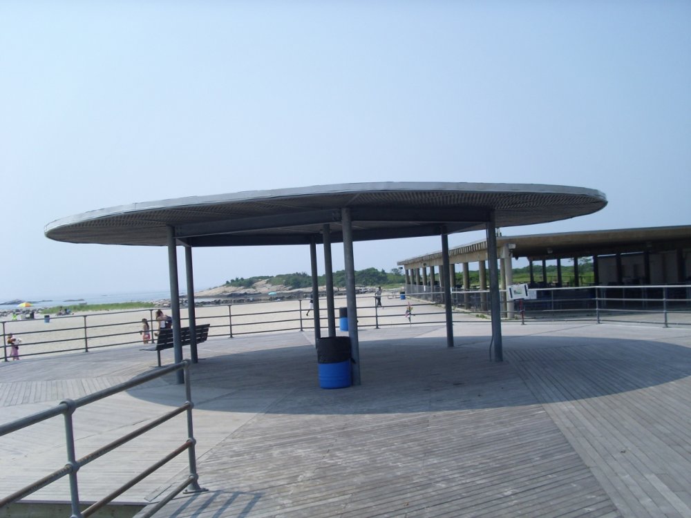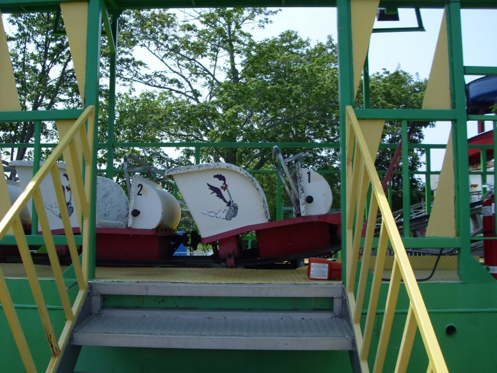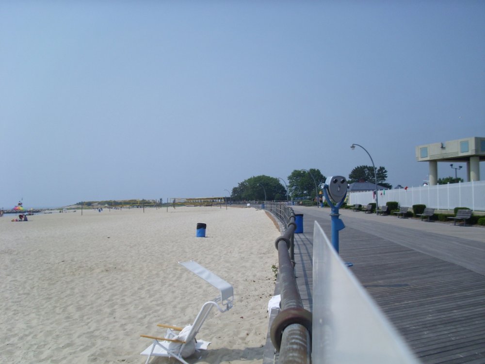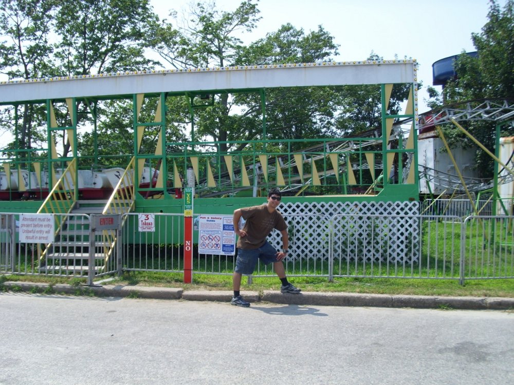 If you were to type in "Connecticut" in the RCDB search box, you will see three amusement parks currently in operation. Everybody knows about Lake Compounce and the award winning Boulder Dash. Quassy got plenty of attention this year after Gravity Group plugged in Wooden Warrior. The other place is none other than Ocean Beach Park in New London. This is my first TR (with a piece-of-crap camera as an added bonus) so forgive me if it's lame, but this was a fun little trip. It was only twenty minutes away from where we were and we had never gone. My friends wanted to take a trip to the beach, and when I saw there was a credit, of course I went for it. If you are headed for this place just to ride the coaster, you are going to have a very crappy day. Bring a few friends, some food, and visit the beach as well. It's a nice little gem that may not be worth a stop in a credit whoring road trip, but is worth a visit if you have an extra day near Mystic Seaport. I couldn't find an extravagant entry sign, so this will have to do. I didn't ride the waterslide. Part of the reason was because the lines got pretty long, the other reason is because I don't want splinters up my- The park had a gym. Despite being air conditioned, I didn't go in. Upon arrival, all the rides were closed. There were no signs posted as to when the rides would open and the website was no help. However, all of the employees said that the rides should be open. If they weren't, they'd be open later. I found the credit! While waiting for the rides to open, we decided to check out the boardwalk first and go to the beach. The waterpark was incredibly small, but it was not very crowded in the morning. The play area seemed kind of...ghetto? The park reminded me of a mini Coney Island. Play ground themeing! Better than Six Flags! Whoa, it looks like Ariel gained some weight! Along the boardwalk, they had pages from a story book lined up. Cool concept, but I didn't feel like traversing the entire boardwalk just to read. The beach will not stay this way for long. There was never a shortage of shade. There were random rooftops over various parts of the boardwalk. This would make a nice picnic pavilion, but it's for private events and the chainlink fence looks uninviting... Did I mention that my camera sucks? Remember that calming, tranquil picture four pictures ago? This is half an hour later. Despite crowds, we found plenty of room to walk around and swim around. At lunch, I was hoping to find some local specialties. Instead, it was the same old over-priced generic stuff. Actually, the hot dogs were pretty good. Whether it was broiled or grilled, it had a nice snap to it. If you made it this far, you're probably wondering where all the ride pictures are... (here's a map for map enthusiasts out there) The park's carousel complete with traditional organ music. It even played some tunes from Roller Coaster Tycoon carousels. I love taking pictures from ferris wheels, but I think pictures from atop this wheel would be less than underwhelming. There were plenty of rides, but not much staff. You would have to find an employee in a blue shirt and ask them to operate a ride for you. Finally! It's roller coaster time! I would submit this for 100% Manly Pose branding, but it just looks like I separated my vertebrae. Put your thumbs down, WHORE! The ride was incredibly shaky, but the awesome operator sent us through about five times. Credit accomplished! I was too big for most of the rides there. No love for the tea cups. (Tea cups!?! Those look more like ash trays!) The last ride of the day was this INSANE spider ride. Despite its clunky appearance, it went pretty fast. Not many rides make me sick, but this one was close! You go around in a circle, up and down, and your car spins! (BTW, that's our awesome operator in the blue) Finally, a nice picture from the boardwalk. This was an excellent visit, and a fun place to be with your friends.