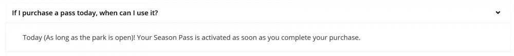 Response from Six Flags Guest Relations: I do apologize. Unfortunately, You have to activate the Season Pass at the park you purchased from. Before you can use it for other parks. Since Six Flags Over Georgia is still closed you need to wait for the park to open to get it activated. So the FAQ mentioned above about being activated on the day of purchase is not exactly true. Can't say I'm surprised!