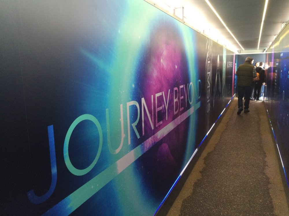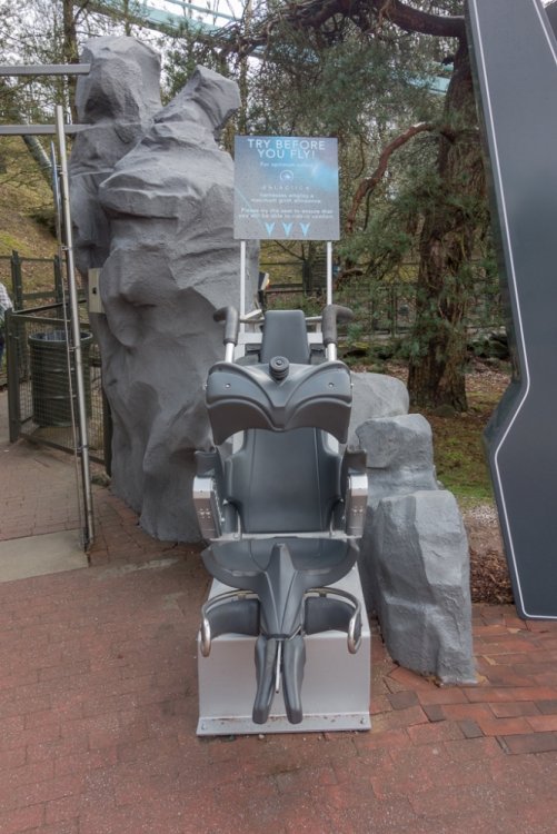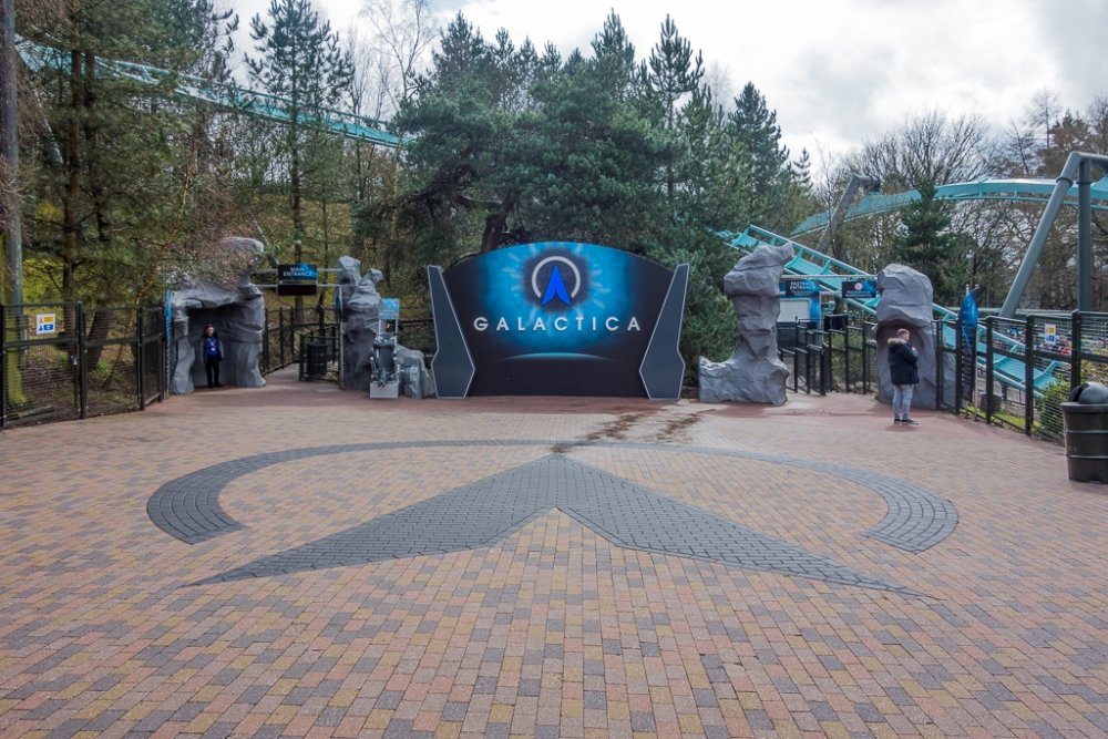 Hey, Just some thoughts and photos from myself about Galactica: I visited Alton this past Saturday, mainly to give Galactica a try. The day started out very rainy but we made our way over to the ride and stood by the entrance until it opened. The whole area and plaza is very similar to how it used to be when the ride was known as Air. The Galactica logo has been created in bricks in the plaza and is a nice call back idea to the ride name "AIR" also being embedded into the ground when Air originally opened back in 2002, (now let's just hope Alton don't build a corner of a coffee shop seating area over it this time around!). The new Galactica sign lights up and looks very striking and should look brilliant during the Scarefest and Firework events. The new soundtrack also gets blasted around the queue line and the area and is very reminiscent of Helix (I guess it would do having been composed by the same guys). I've embedded a clip below. Half way through the queue comes a photo building which is actually pretty unique. Due to the fact there is no point in taking an onride photo of people all wearing VR headsets, the on-ride photo cameras have been removed and this new photo kiosk building built in the queue line. When you enter there are six acrylic bubbles on the left hand side. You stick your head in them and look directly at a screen which takes your photo and prints out a ticket for you to scan after the ride. The photos are made up to look like you are wearing a spacesuit. It's a nice effect overall. After the photo op, the queue splits to either the left and over a bridge or to the right and straight on. Each way takes you into the station ready to board your flight. The front queue line option has been entirely removed considering that it is entirely pointless now. As many people have stated, the whole boarding procedure is pretty laborious. Each row of the train had its own dedicated ride operative and the process seemed to go like so: - Train arrives back in station and tilts to seated position - Guests sit headset ontop of storage pouch - Operative wipes headset and places each securely in their pouch and velcros it shut - Restraints are unlocked and rides disembark - New riders board and operative checks restraints and locks them - Operative opens headset pouch and re-wipes each headset then tells rider to place it on their head - Rider adjusts tightening strap and focusing dial to suit themselves - Operative recalibrates each headset by asking rider to look straight ahead and then starting calibration - Train is raised into flying position and departs Staff were getting pretty quick with the whole procedure but it does take time and has impacted throughput. The headsets are pretty heavy but you get used to them. The focusing dial helps but doesn't seem to go far enough (well not for me). Audio was great on my first ride, second was left side only and third was very quiet and could hardly hear anything. One great thing about the headsets is that it really does block all excess light out and really takes you away from reality. With your headset on and fully adjusted you sit there feeling quite alone staring at a rather large Galactica logo and what feels like a giant very black room. Ok, so, the ride experience, once the trains start moving, the room opens up and you find yourself in a quite elaborate space station corridor moving forward. Quite a lot is going on and it's nice to be able to look around and see things either side rather than just infront of you. As you engage the lift you get the best part of the whole VR experience in my mind. Such a lot goes on and it's hard to decide where to look next. It's quite a strange sensation. This is the part that Alton is calling the launch. At the top of the lift you exit the portal and you are in deep space flying around the planets. As the fly to lie inversion arrives you are portalled (new word!) to a fire planet to witness the birth of a new star apparently. This part is where you are lying on your back. Due to this the headset does wobble quite a lot. After you are portalled again to an ice planet that crumbles away infront of you. Near the end of the circuit something happens that seems to take you offcourse and you are told you are landing and head through an emergency portal to land back on your original spaceship. I enjoyed trying a VR coaster but it does have some issues. The two biggest personally are the resolution is not quite good enough to give you that feeling of escapism and secondly you do see the edges of the scenes a lot more than you should. Just turning your head slightly you notice them and it was very noticeable on the barrelroll as the headset video could not keep up with the physical motion and showed me the edges a lot. One thing I was highly impressed by is that it did not make me feel queasy or ill in the slightest. No problem at all. I'm not too sure what others will make of it but this was my experience. Overall, I think it's a nice update to Air and gives it a bit more rerideability and I think the public will love it. I did notice however that it does not feel like you are riding a rollercoaster anymore. It's like a glorified simulator. It has lost it's sense of height when you are at the top of the lift and there is no real sense of speed. It's very hard to explain and I think just needs to be tried out to understand. Anyway, some photos and a short video I took: The old Air Shop is now home to the Rollercoaster Restaurant opening in May This is the spaceship you take a flight on A Galactinaut ready for their flight These are two of the small panels between each pair of seats. Apologies for the bluriness but I didn't have long the snap the photo and failed. As far as I could tell, this panel shows the operatives the current battery level, bluetooth connectivity status, allows them to calibrate the headset and to enable such features as captions and subtitles which is a great addition!) Galactica soar