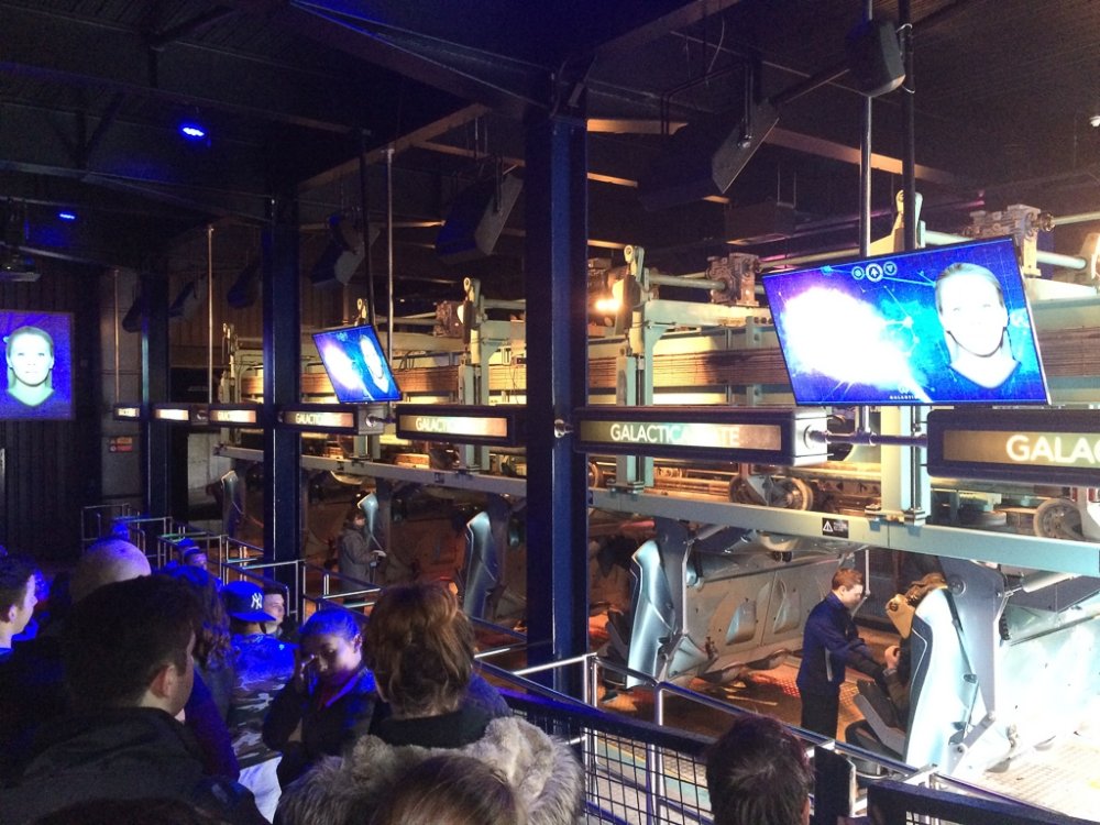 I rode a couple more times during a visit to the park yesterday. My first ride of the day was fantastic. All in sync, audio was balanced and not just in one year, was nice and clear too. When everything is correct it all works to bring quite a nice experience (apart from the video rushing through all the destinations). My second ride in the afternoon was another story. The audio was fine but it was waaay out of sync. Before trying Galactica I didn't think it would affect me as much when it was out of sync as it actually did. Blimey I was wrong, the video was 1-2 seconds behind where I actually was on the track. It seriously makes you feel as though you are going sideways. Very very weird feeling. Thankfully they seem all too aware that things can go wrong with it in small ways like that and promptly gave us fasttracks for another day which was kind of them. I do think the boarding process has reached its fastest (I honestly can't see how it can speed up anymore considering the amount they have to get done to get all riders in place and set up before departing. It's not the fastest but you shouldn't expect it to be as fast as Air was. I managed to get a clearer photo of the small boxes they have between each pair of seats which allows the operatives to manage the VR experience for each person. It's a small touchscreen that gives a read out of the headsets battery status, bluetooth status and also allows the ops to reset the orientation. (Resetting the orientation is such a big thing as to how a rider experiences the ride that I believe they should explain more clearly before putting on the headsets that once they are on and been tightened to sit and look directly forwards (I find a slight tilt of the head up helps too) whilst the reset the orientation so everything is correctly aligned. I also noticed that a lot of the action in the video happens directly in front of you and a lot of people must miss it as they are looking down rather than infront of them. I asked to try a subtitled version which they kindly quickly enabled. This gave me a small translucent rectangle at the bottom of my viewport that followed my vision around. Unfortunately the headset wobbles and bounces too much during the ride that it makes it very hard to read. The rectangle is also placed very nearby to you in 3D space so if you've adjusted the focus to be sharp on the background video, it puts the text slightly out of focus adding the legibility issue. The other thing that made me laugh is that as you are sat in the station you sit and stare at a rather large Galactica logo in the centre of a very black room. This Galactica logo was also subtitled "Galactica"!! Overall, people seem to enjoy but I really can't see it lasting all that long. It definitely increases Air rerideability but on the downside takes away its rollercoasterness. People are so focused on the video and audio and forget they are on more than just a simulator. This is proved from standing in the plaza watching the ride and just seeing silent trains go around the track with no one making any noise! -