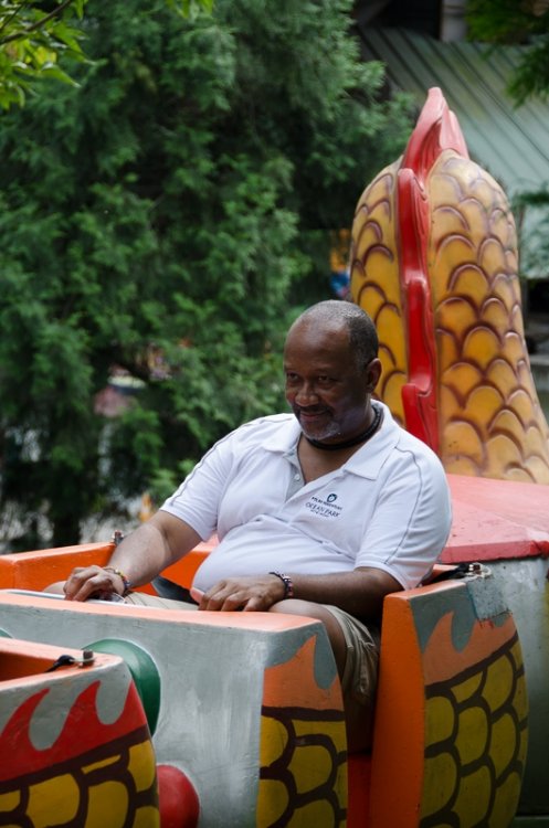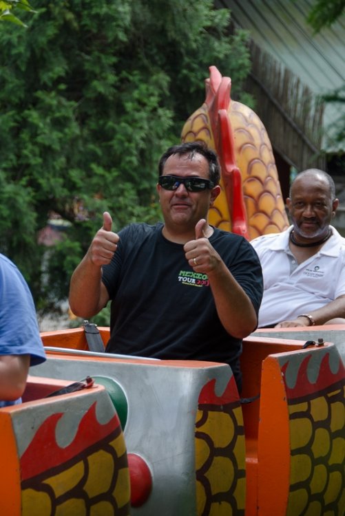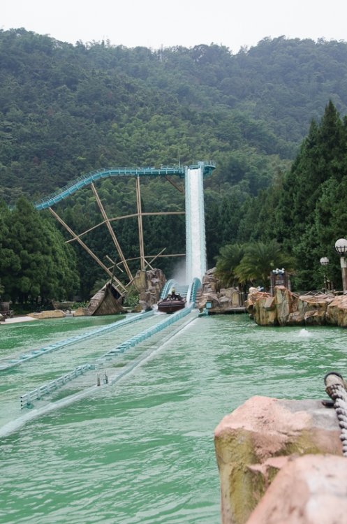 Day 3 of TPR's Taiwan trip took us to Formosan Aboriginal Culture Village. The park was about 15 minutes away from the hotel we had stayed at. We arrived nice and early and immediately ran into an issue. The park didn't want to let us in! They couldn't understand what we were there for and thought that we were a bus full of lawyers that had come to attack them for having ride that seemed very similar in name and theme to another popular ride at other parks. After a bit of negotiation they relented and let us in, closely followed by a member of the parks management team. View from the deck outside of the hotel that morning across Sun Moon Lake The park entrance. Looks very aboriginal and cultural don't you think? Ooops, photo from another da...Nope, This IS at the same park believe it or not. The park had a lot of themeing based on the popular Japanese anime series of 'One Piece' Awaiting the rides to open One of the parks main attractions is a coaster called "Space Mountain", no obvious clues as to what they were worried about to me!. The coasters station was inside a huge indoor section of the park at the far side. Welcome to Space Mountain. The ride is basically a small Vekoma coaster in the dark. I can't remember any lights during the ride or much theming apart from the station itself which had a huge rocket hanging from the ceiling unlike anywhere else. The coaster had a nice speed to it and we all got plenty of rides in. Robb managed to somehow get the park to turn on the back of house lights so we could ride and see what was in there. It turned out to be a large shed where the park stored a ton of stuff. It was better with the lights off. Not similar in any shape or form. Just next to Space Mountain was the Jurassic Boat Ride. Not much more to say really. It was a boat ride around creatures from the Jurassic period! Much better than the Jurassic Boat Ride in Pigeon Forge At the other side of the park, opposite the massive indoor section, the park had a really nice looking drop tower themed to a UFO. Really nice ride and it looked like the ops were glad they had someone to finally ride it. Robb has a great video of it so go check it out. I'll wait here... A really cool Intamin drop tower ...Back?, ok, good This looks a bit more cultural The park had what looked like a really nicely themed SLC called Mayan Adventure. Unfortunately or maybe fortunately for us, the park ride had suffered quite a bit of damage during an earthquake and was totally closed. Ah well. Just a reason to go back if we get the urge to want to ride an SLC. oooh, a Vekoma SLC, Doesn't look too open to me hmmm KT awaiting people to finish riding the drop tower More hmmmm.... The second major attraction at Formosan Aboriginal Culture Village is a Mack water coaster. I had not ridden one and was looking very much forward to finally getting to ride one. I had no idea that the dip in the middle at the top was taken backwards so that was a nice surprise. The whole ride was really well themed and it was great watching the exploding water grenades go off as the boat returned to the station. I think Robb took a video of this but I have not not seen it yet. Must go and scout it out. Caribbean Splash Skloosh!! One unique part of the park was it's cable cars. You can catch the cable cars which takes you to the top part of the park where you can change to another set which take you high over the hills to see the stunning views over Sun Moon Lake. We were told that it was a must do attraction there and I was so glad we took the time to do it. At the skyride station at the far side we hopped off, walked around and hopped back on. The Skyride Not this visit eh Amazing views The half way station OMG, So thankful we didn't have to walk it all! Sun Moon Lake Back at the halfway station, we decided we would walk back down to the amusement park through the culture village area. This basically consists of a variety of little downward sloping paths next to displays, small shops, and descriptive signs explaining all about the aboriginees of Taiwan. You sure it's this way? Just outside the entrance to the park was the European Garden. European Garden Around mid afternoon we left the park and made our way to Atayal Resort. This was a very very nervewrecking drive around extremely windy hills and roads. The bus driver just went for it and at one point overtook a rubbish bin lorry on a bend with a steep cliff on the side!. We made it to Atayal Resort in record time. We saw this from a distance and had no idea what it was. It turned out that it was at Atayal Resort and we still had no idea what it was! Park Entrance What is this? Bit run down It was very very busy Atayal Resort was decidedly empty when we arrived so we found the map of the park and knew that two possible coasters may be found here. The whole park was nicely landscaped but totally dead and things were looking like they hadn;t had much upkeep for a very long time. We started walking to where the map said the first one was and a guy from the park told it was closed for maintenance and that fit in with the sign over it's entrance. Robb persuaded the park staff to let us ride so they let us in and off it went! The second group of us then hopped aboard and the op pressed the "Go" button and nothing happened. We were obviously too heavy we thought, a few people hopped out and she tried again but to no avail. Robb decided that the battery just needed time to charge up and as the op kept pressing the "Go" button keep relieving it of power, it failed to operate correctly. So we hatched a plan to get her away from the control panel. Robb then declared we all get off and wander around for 10 minutes. We did the aforementioned wandering and then hopped back on and the plan worked! Around it went! Credit got!!! Mission Accomplished. Thanks for the persistence Robb! Closed, Totally out of order. No way this is operating Pretty flowers oooh, We got to ride a closed coaster. Can't wait to see