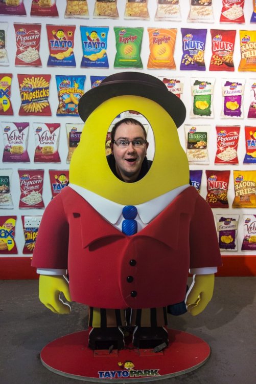 15. Hello all!, Ever since I heard that Tayto Park in Ireland was building a wooden coaster I had obviously decided I should get over there and ride it shortly after it opened. This last Wednesday ended up being the day it happened! After an early start and a short 35 minute flight to Dublin from Manchester, we picked up a hire car and made our way to Tayto Park which is around 25-30 minutes from the airport. I was joined on this trip by mousch and medoman as well. We purchased our park entry tickets, an unlimited ride wristband and started our day! From the theme park enthusiast point of view, Tayto Park seemed to be pretty well unknown of before this year and then out of the blue they announced a huge expansion and decided to install a whole host of new attractions including a Zamperla Air Race, a 5D Cinema and the stand out Cú Chulainn Gravity Group woodie. These three join last years new ride, The Rotator. The park is situated directly opposite from the Tayto crisp factory (otherwise known as 'chips' for you guys across the pond) and the park provides a self guided tour of the factory to visitors but we will come back to that later. My first time flying Ryanair. The flight was ok but was pretty much a flying advert! I guess you can't complain for a £20 return trip! Oooh! What can I see from the car park? It's Cú Chulainn, Irelands biggest roller coaster! The Ropes Course. Unfortunately we didn't get to do this. Hey, It's Mr Tayto! They have a lot of zip lines, climbing walls and slides at Tayto Park The Air Race is another new for 2015 ride. It's just like the others. Good flippin' fun Wheee! Yes, the front of the train is extremely creepy. The amazing looking entrance to Cú Chulainn. We'll be back later for this as it didn't open until 12:00 Here's the "inverted" part of the ride. I wouldn't really call it a invert though but that's just me. The Rotator. Quite an unusual type of flat ride and one I had not experienced before. Pretty intense at times. Dinosaurs Alive! ROOOOOAR!!!!!!! The previously mentioned zipline Tayto Park also has a zoo with 'ard' to find animals like this wolf. It's a lovely place with all sorts of activities for every member of the family. Gardens, Flats, Coasters, Zip Lines. What more could you ask for? A fluffy fluffy bunny (not stuffed with medicine and goo though) Not sure if this travels around or if it's static but kids parties are held in it. The Tayto Factory. The tour consisted of several of these long, super colourful corridors explaining the history of the product and several viewing windows into the factory. The tour constantly played the Tayto Song: That's a lot of different packet designs! ARGH! Lunch At this point, it was nearing midday so we made our way over to Cú Chulainn. This is some of the theming inside the entrance building It's a big ride It's got a ton of pops of airtime thoughout and several double ups and double downs (Not the KFC kind) Yay, Timberliners Seeing the reactions of the park visitors to this ride who have not seen, let alone ridden a ride of this size and type was great fun. I saw lots of nervous people before the ride but nothing but amazing comments about it when they got off after it. It makes a great roar as it takes it's lap. Stats Great tp hear Cú Chulainn doesn;t permit Selfie Sticks! Nerd photos imminent For you control panel enthusiasts. Our "normal" on ride photo Many, MANY rides later This is what the station platform looked like for the majority of the day! Going up... This is the overbank just next to the station The first tunnel just after the first drop. Taken from the car park. INVERT! Thanks Tayto Park. We'll most certainly be back! After leaving it was off for a drink. Thanks for reading!