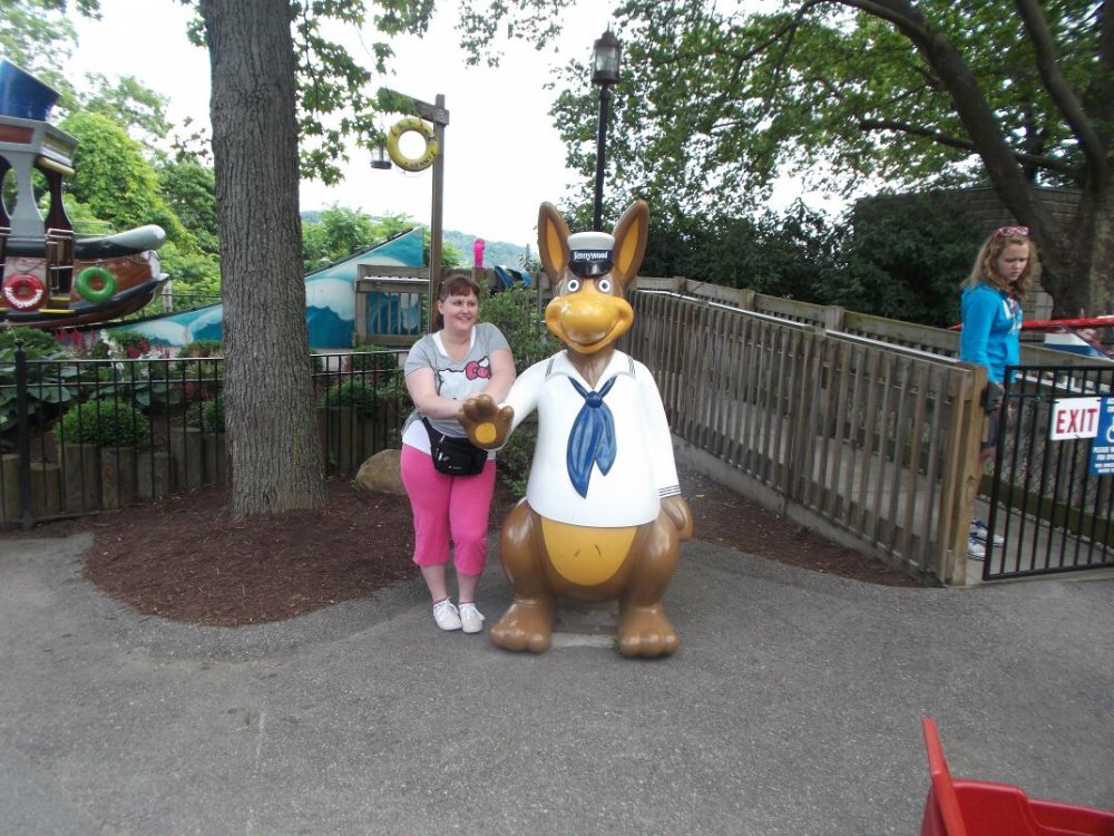 EDIT: Nevermind. Eastbound from Akron to Pennsylvania! Pittsburgh skyline. Partial shot of Heinz field, home of the Steelers. PNC Park, home of the Pittsburgh Pirates. Phantom welcoming us to Kennywood. Sky Rocket, right at the front of the park. George was here. Seahorse waffle fries were good! Seeing this on previous TRs, I always thought this was the Kwood entrance. Getting Jacked! Love this shot of the Racer. A view of the surrounding area from the Kwood picnic shelters. Fear the Roo! (Oh wait, were not in Akron anymore). My favorite shot of the day. Christina by a fountain, with the clock sign in the distance. Phantom's Revenge Ghostwood Estates Thunderbolt hill above the potato patch. Freshly squeezed lemonade is a hit with Christina! En route to our first roll on the Phantom. There are probably lots of photos with this shot already on TPR. Ok, enough posing. Lets RIDE IT! Cool fountain in the lost kennywood section. Me boarding swing shot. Whhhhhhoooooooooooaaaaaaaaaaaaaaaa. Black widow off in the distance, not open yet. Thought this ice cream stand looked cool. View of Sky Rocket from the upper parking lot. View of the Phantom from the upper parking lot. theming on ghostwood estates entrance. Part of the double rainbow we saw from Phantom's lift hill. Now faded. Phantom meets rainbow. Thank you Kennywood for a spectacular visit! We stayed the night near Pittsburgh at a motel 6. Room wasn't bad for a budget motel. My hair after riding Sky Rocket four times! Flat screen tv, microwave, and fridge. All we could ask for. IKEA! We don't have an Ikea near us, so we decided to visit the Pittsburgh one while in the area, and get some home decor ideas. A home furnishing superstore, with its own restaurant. Brilliant! After deciding on a new couch for someday soon, I decided to relax on it a minute, wearing my new Phantom's Revenge T-shirt. Ikea was neat, didn't spend long there, but got some good ideas. Christina in her new Kwood shirt, after we got home.