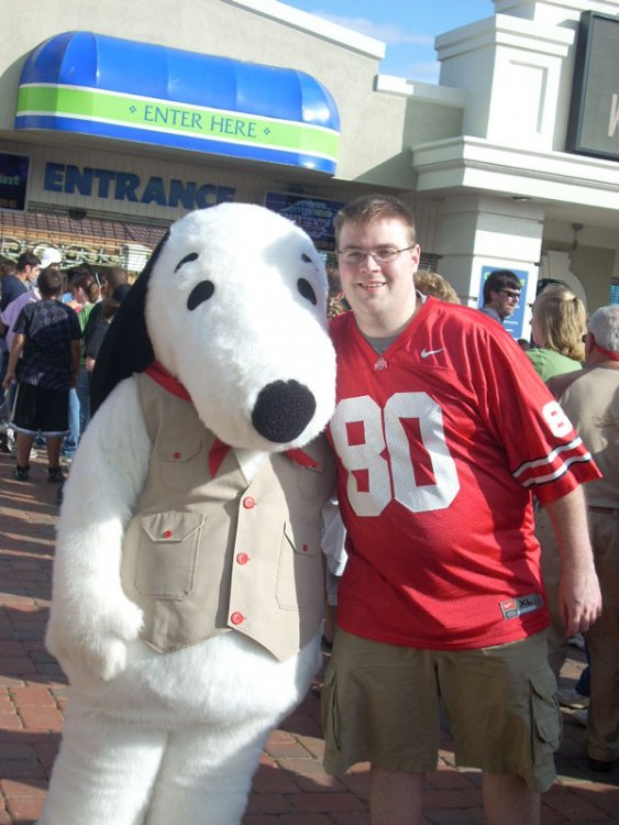 Greetings All! This is my second TR on TPR, as I posted one last year. I had a wonderful time at Cedar Point on Opening Day, May 16th. We didn't get an extremely massive amount of rides in, but got in a little bit of everything. Myself, along with my GF (Nicole), were excited to open up the season, as well as celebrate Maggie's 20th Birthday. Arrived at about 8:30am, got a GREAT parking spot, a 2 minute walk to the front gate. Soaked in the new signage at the gates, and then proceeded to the pass center to get our season passes processed. We thought we may have to wait until 9 to get our passes processed, but they were already opened when we got there. We waited in line about 5 minutes, and then the whole procedure was done in about 2 minutes. While waiting in line, the busses carrying the Ohio State University Athletic Band pulled in. After they unloaded, we got to hear them warm up a bit. On our way to the entrance line for Pass-holders, and a few mascots from the Peanuts Gang were hanging around. Got some good pics (see below). As soon as 9AM hit and we were past the gates, headed to MF. (Didn't run there, just walked and soaked it all in). Noticed the new brick pavers near the main gate, as well as the new fun fountain on the Midway. We rode MF after about a 15 minute wait. As we were entering the Queue, got spotted by our friend Beth. She's too chicken to ride it, lol. Upon Exiting MF, I reached into my pockets, to find my glasses completely busted, snapped right in the middle. It was my fault as I should have had them in a case, but I had gotten away with simply having them in my pocked before. After Mf, headed towards Maverick where we were on after about 20 mins. Maverick is still a definite winner, but I have to hold on to the restraints while riding, otherwise my neck gets beat up all to hell. Next was gemini, which was far too long of a wait due to only running one train. Which in the station, you could hear the tOSU spring band playing, and you could tell who the OSU alumni members in the station were. After this, headed towards Maggie, to celebrate the 20th anniversary. The wait was roughly 20 minutes. Awesome run, just as always. Sitting behind us were some teenage boys, who obviously had never ridden Magnum before. They were thinking the ride wouldn't be much, since they had already ridden MF, thinking Magnum was just a smaller MF. They were definitely proved wrong. At the end of the ride, those boys were laughing their heads off, with one of them shouting "I was flying out of my chair over every hill!". By this time, the park had been opened up to the general public, and a long line was already forming for Maggie's party festivities, which included free cake and ice cream, and a chance to sign an anniversary banner. We decided to skip it, thinking riding it was celebration enough. Also, I had gotten the chance to sign Gemini's 30th banner last year. Then it was to the gameday grille, where we often eat because of reasonable prices. After that, Met up with our friends Beth and Becky, where we got in line for blue streak. The wait for blue streak was insane all day, 45 minutes. Around this time, the rain started slowly coming down. After BS, Nicole and I went towards Iron dragon, to watch the OSU athletic Band Perform. After a good performance, we headed back to frontier town, where we decided to buy new shirts. Nicole got one featuring some of the Parks coasters, and I got one featuring the Maverick Logo. It started to really come down at this point, so we headed back to the front, to the car, to wait out the rain. The rain quit about 4:30, and the weather was beautiful the rest of the day. Headed back into the park where we rolled Power Tower down, and Magnum a second time. Nicole said she doesn't like drop rides, but I convinced her to get on Power Tower anyway. She liked it. Got in line for Top thrill Dragster, where it was rollback after rollback after rollback. You would have been waiting hours to get on, considering that they were loading only 2 or 3 rows of the car, along with the fact that half the launches were still rollbacks. Left the line and got some munchies. CP Fries, and then some awesome custard. We were going to ride Blue Streak again, but the line was still too long. Left at about 7. Next time, we will stay long enough to see the new lights thing at Frontier Town. Good trip, would have been PERFECT if I didn't break my glasses. I didn't expect to get in a TON of rides on opening day, but we rolled pretty much what we wanted to. Ride Counts: Magnum - 2 And one each for: Millennium Force Maverick Gemini Power Tower Down Blue Streak Now for the pictures: (In reverse chronological order, I apologize). A view of the skyline from the causeway. OSU Athletic Band warming up. OSU athletic Band warming up. New main entrance sign. Me in front of the new main gate sign, for Maggie's 20th. (I look weird in this pic cuz the sun was making me blind). New signage in the Parking lot. The Peanuts Gang hanging around the main gate. America's Favorite Beagle was kind enough to pose. Lucy with Nicole Millennium Force 1, Glasses 0. New LCD Screen on the main gate, plays ads and ride videos, etc. Millennium Force Train, racing by. Gemini Lurks in the distance Also Lurking, TTD Magnum's New Sign. TTD. what else? New Fountain on the midway. Nicole and Beth Me and Beth Becky and Beth Myself and Nicole OSU Athletic Band Performance OSU Athletic Band Performance OSU Athletic Band Performance Power Tower Top CP Steamer Cool shot of Maverick track from wet FrontierTown