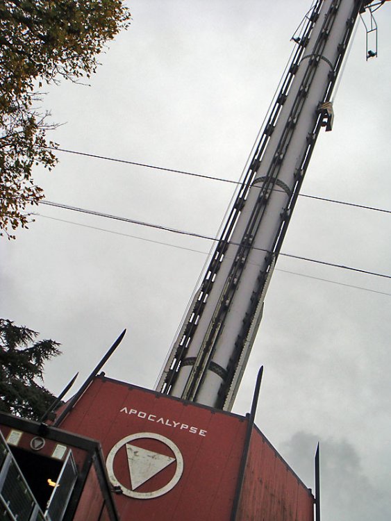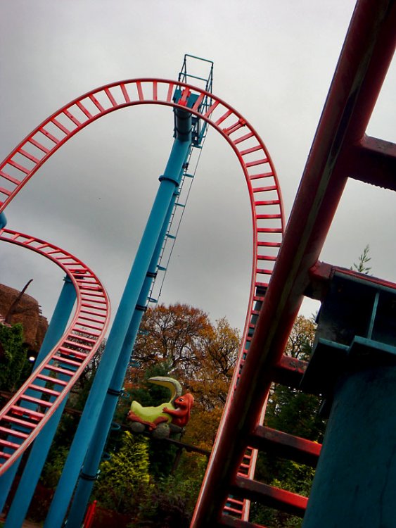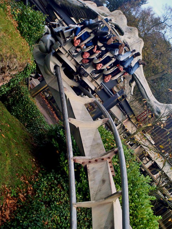12. Oktober means Halloween time so we went to the UK! CRAP, made a mistake with the attachments so you have to view the DM pics from the end to the top of the post I hope you enjoy the pictures + comments but be warned that my comments aren't that cool and funny to read, imo... Overall opinion about this park... I didn't like it very much! it was good for a one time visit to have the coaster credits + riding the only standup coaster in europe and the only standup floorless drop tower witch was really good imo! Alton Towers report will come tommorow, right now bed time! Yay, after a trip that took almost 9 hours, we arrived at DM. First stop, the pretty unique drop tower Apocalypse! Hmmm witch one should we take? Standup floorless ofcourse! BTW I really loved the "seats" G-Force, shitty MS X Car coaster! Car on the airtime hill Vertical loop 1 Vertical loop 2 I like this kind of steel Corkscrew B&M Look-a-like Kiddiecoaster time! Train in the new 2008 section of the park, Thomasland. They have a monorail @ DM o_O Doesn't look bad but the coaster is hell 2 Times corkscrew pleasure Home o_O AT you mean *woohoo*