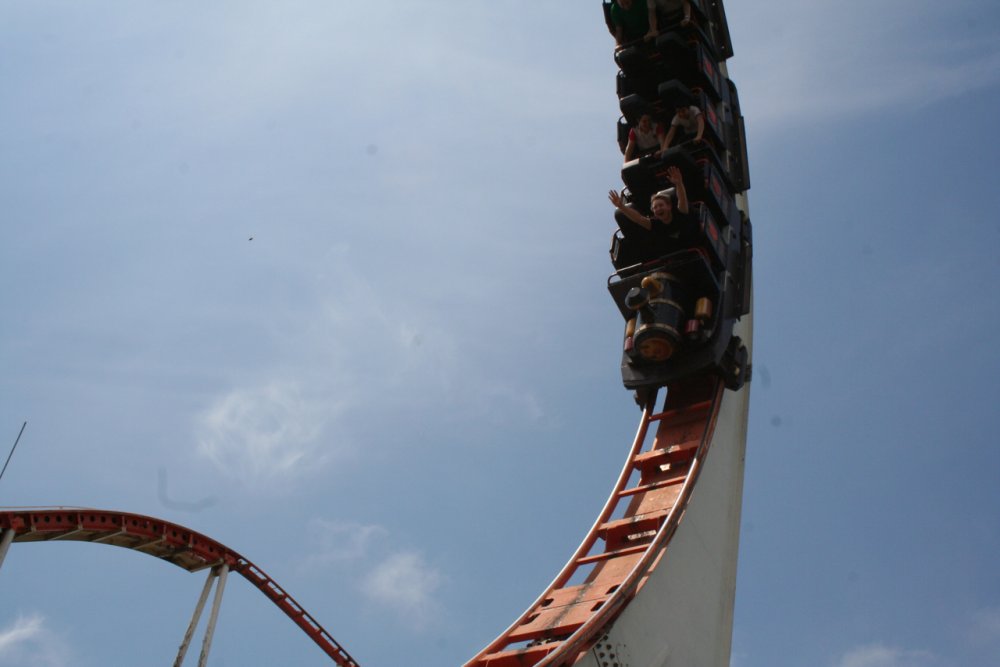 I'm a huge fan of drop towers, but whenever I ride and of the Towers of Terror, I always get exceptionally nervous. I'm pretty sure it has to do with the orgasmic airtime that they exert, because airtime is usually my favorite sensation on a ride. I also get somewhat nervous when riding Intamin Rockets because of how amazifyingly intense their launches tend to be. I guess that goes to show you that I haven't ridden Dodonpa yet.