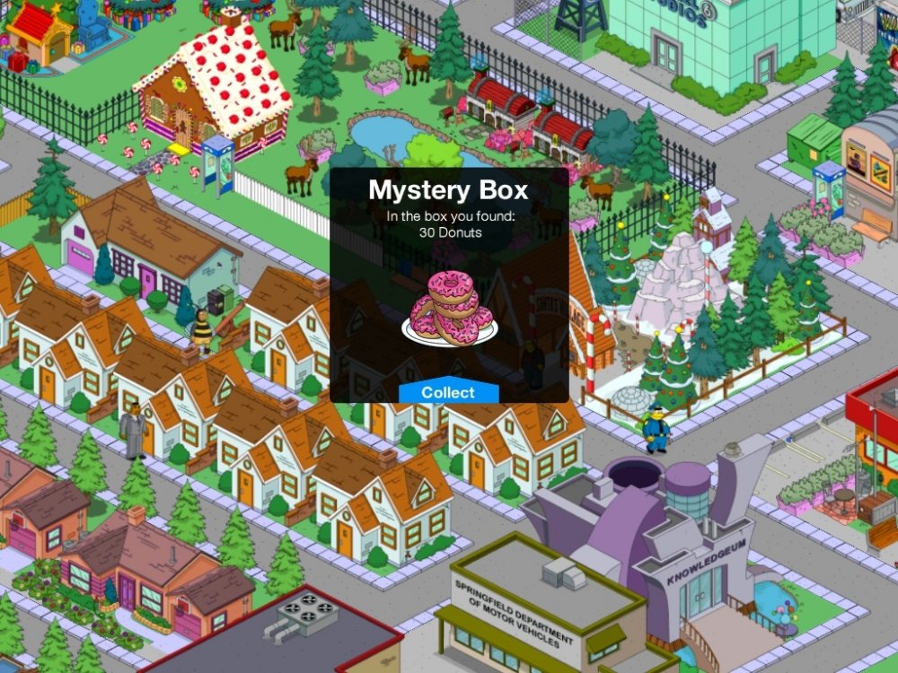 11. Ok. All of my peeps are free in anticipatation of the ending of the Christmas event. (Except for Prof. Frink, because I accidentally tapped on his exclamation point. Now he's on a 4hr task.) Talk on the boards has been minimal, with a reminder that last year when the Christmas event ended, an update didn't come until 2 days later (I don't remember that, but OK) someone did mention that the Simpsons Valentine episode airs on 1/26, so that may be coming. Some are hoping for some sort donut reward for unused spin tokens (I have 63) but those who seem to be "in-the-know" kinda doubt it. The consensus seem to think (like last year) the next update will be like last years, centered around Valentines day, and no major update until after that (new level(s) etc...) I'm tired of the snow. Time to hurry up and wait...