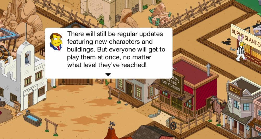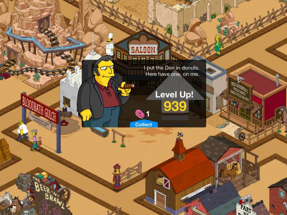16. Alright. Here's my understanding of what's going on now. If you've noticed over the last couple of days, there have been a couple of updates. Those were just bug fixes, tied into this leveling up I'm talking about. (Some people had a 40,000xp/level. Now it's corrected at 500,000/level.) As far as the game ending - NO. The first pic below explains why they technically "stopped" at 60. In essence, it's to help new players enjoy all content as it is released. Now - leveling up will get you quests, dialogue and new content. But, it is expensive in game cash. I spent about 130 million and am now down to 20 million. Before I tell you the fastest way to do it, here's what you get (besides 1 donut for every time you level up. I added 879 donuts by leveling up. After that, you get the standard 1, 2, or 3 donut guessing box.): LVL 97 Quest for Bart head in the Springfield Mountains. (Think Mt. Rushmore w/ Simpsons)(pic below) LVL 137 Quest for Lisa head LVL 200 Some kind of Homer dialogue (possibly for head) may also be connected to LVL 223 and/or 350. LVL 419 Quest for Marge head LVL 742 Quest for Maggie head LVL 939 max Even if you get to LVL 939 like I have, you still have to complete all quests in order, starting with the Googleplex line. (Which I have not yet completed) How to level up quickly: First, you need a lot of in game cash. I'd say 20mil+ minimum, to make it worth your while. Second, you need the XP Collider (makes ALL the difference) Third, you need a large set of undeveloped land. The more you have, the less time it will take to do, and time is of the essence while doing this. Now, spend 5 donuts and activate the XP Collider for 24hrs. Now go to the build menu, find the miscellaneous category, (the lady liberty looking icon) and find the "Rat Trap Truck" ($150,000) Buy as many as you can and put them on the undeveloped plot of land.The XP starts flying. I'm not sure of the exact specifics, but I think you'll level up 2 times for every 3 trucks purchased (or something like that, I'm not really sure). Leveling up is now set at a CONSTANT 500,000xp. It does not increase anymore. Now, sell back all the trucks you just purchased. (You get $37,500 for each). You can do it fast by holding your finger on the screen till the blue dot appears, highlight as many of the trucks as you can, then hit the dollar icon to sell them all back at the same time. Once your land is clear, just repeat as much as you feel comfortable. Though I wouldn't dip below 10mil, as we have no idea what's coming in future updates. Hope that helps everyone. Any questions, just ask and ill find an answer. [Edit to add] The updates may not have been related to the glitch in leveling up, as someone noticed that the XP is set at 40,000 for levels 61-100, 500,000 for levels 101-939 And 1mill for everything past 939. The game will go on!! Mt. Simpsons (aka: The Homerlayas)