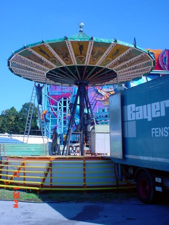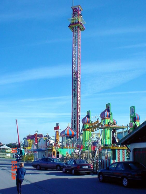 Speak to the KrautKrautWithAltitude replied to KrautWithAltitude's topic in Theme Parks, Roller Coasters, & Donkeys! Here we go with September 16 (<- every time I use this one I got a notion of ridiculing myself. But I can´t hep it. Is it really about the mouse or is it something else?) Norman Mushroom credit! Once again all the smells and sounds come up in my mind Should they really queue up there? For all the Egypt freaks. It is rumored to be full of quicksand and scorpions. Freefall up and testing. Still slightly askew, but who cares? The Sensorium. Probably the biggest ripoff on the whole place. 95% of the budget must have gone into the cladding. Inside, a couple of benches to watch random laser beams, breathe artificial fog and listen to way overamplified sound effects. Totally pointless and boring. Not even really dark inside. The Toboggan. Great to watch drunk people trying to get on and stay on the conveyor belt. A total classic and must-do. Topped of by a slide. Looks a little unsafe and ancient and just is. "Hey! Look at me! I´m scary!!" Poor monster - he´s just out of competition Nigthfly going for a test spin Can you belive it? They put up the whole thing within 5 days! I totally missed it! Couple of aliens spreading really bad vibes over a poor little dark ride and yet another red carnie truck "How do you like my armpit?" - "Go ask the lion!"