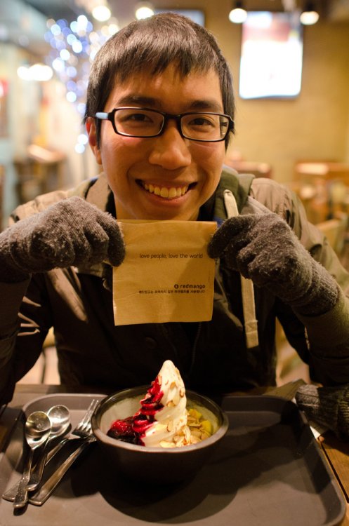 Here we go. I have about 2000 photos from this trip. After sorting, I have around 500. I'll just share the meaningful ones here. I have photos from Seoul, Tokyo, Kyoto, and Singapore. Each post will be a different country, starting with Seoul. some delicious soup noodles with kimchi kind of shocked to find baskin robbins in seoul kind of a typical street at night a picture within a picture some temple the guards were in very traditional garments namdaemun market - (supposedly) the largest such market in seoul seoul at sunset as seen from the ridiculous freaking cold hike up to the seoul tower. it was FREEZING out and the line for the cable car up to the top was enormous, so I just hiked seoul skyline red mango in seoul was really classy.. on the last day a friend of mine who lives in seoul took me out to have korean bbq. it was delicious -