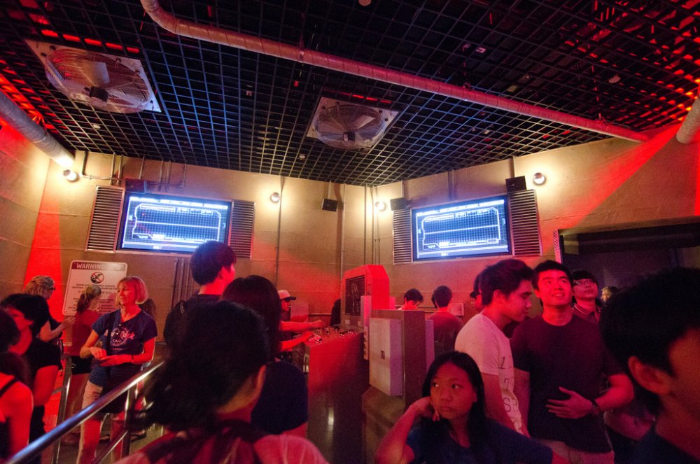 ^^^Nope, but I walked past the line and it was like an hour. ^^Bad because of only 16 people/dispatch. My memory is fuzzy but I'm pretty sure the station is similar to Maverick in that they load and dispatch 2 trains simultaneously. The difference is that both of Atlantis's trains combined only hold four more people than a single train on Maverick. The operations were pretty good though. The only thing I'm confused by is why Fahrenheit's line seems to move faster. -