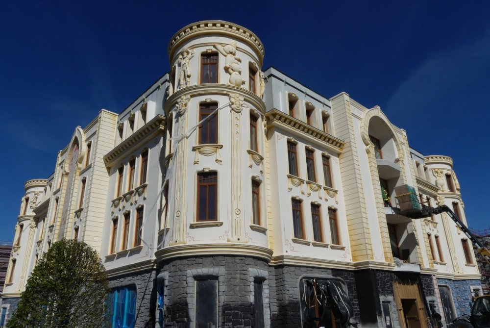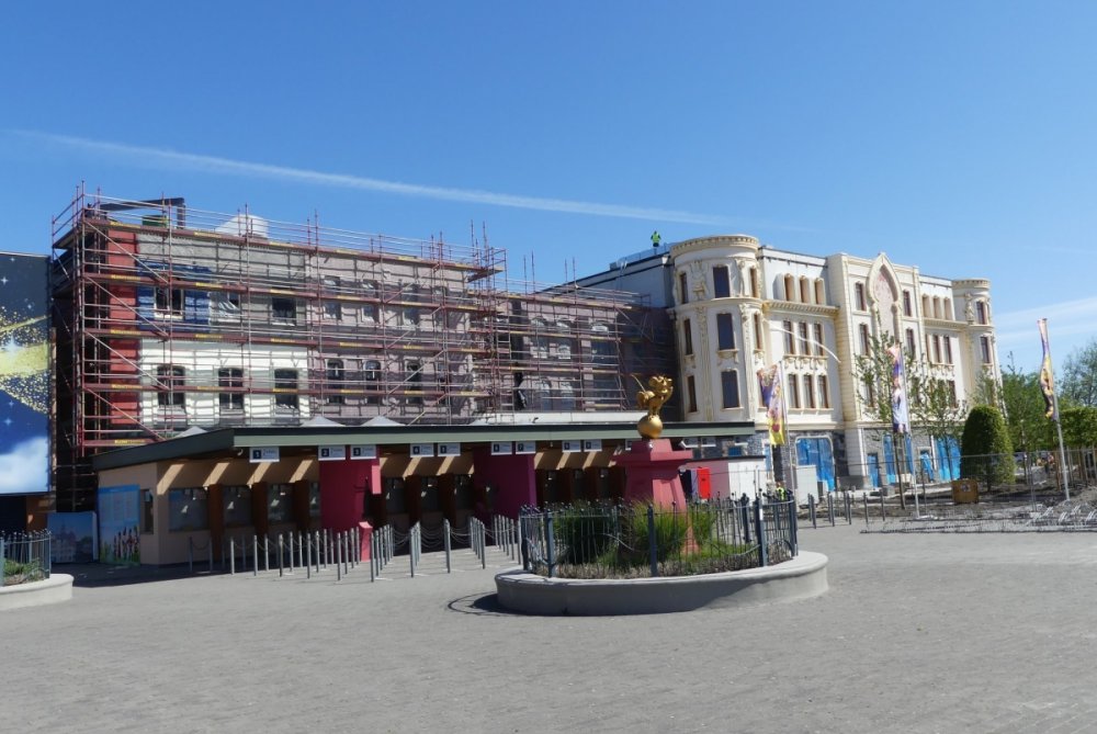 Quite a few footers for the Spinning Coaster are already in place. This large area has been cleared and has footers installed: And it seems the footers in the lake are all installed as well... The hotel has also progressed nicely... The main building now has no more scaffolding, revealing lots of cute details. Still lots of work left on the west wing (which leads towards the park entrance)... ...and should end up looking like this: As well as the north wing (which stretches all the way to the park's waterpark)... ...and will look like this: photos: Plopsaland, Themepark Magic & local news -