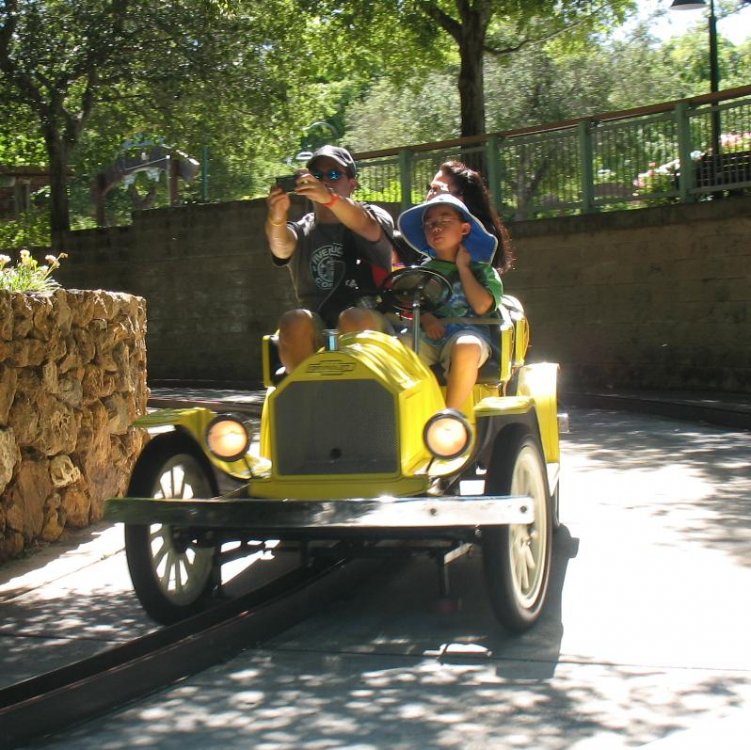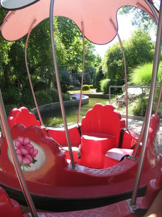 Day 1 - Gilroy Gardens part 1: Looks like it's going to be a busy day! This year celebrates the 10th year of wonder. I'm guessing magic was already taken. Just walking up to the entrance you can tell Gilroy Gardens is a beautiful park. If garlic and flowers are your thing, you can get hitched at the park. I was lucky enough to get this shot with the best park mascot ever! Lets go frollic through the gay garden and try to find the rainbow connection! Yup, looks like a throne fit for a queen to me. The paddle boat ducks had the longest line in the park. On one of, if not, the best car ride at any park you take the tree tunnel as well as an actual tunnel. Got gas? or need a wash? Boys and Girls I give you driving at it's best. I bet this picture's never been taken before now. you mean quick silver isn't just a clothing brand? Going to be a long wait to get this credit. Quicksilver does some rollercoastery stuff It's actually a very fun ride, the 2nd half is where all the fun happens. While on the Skytrain I got this shot of Shane having way too much fun. -