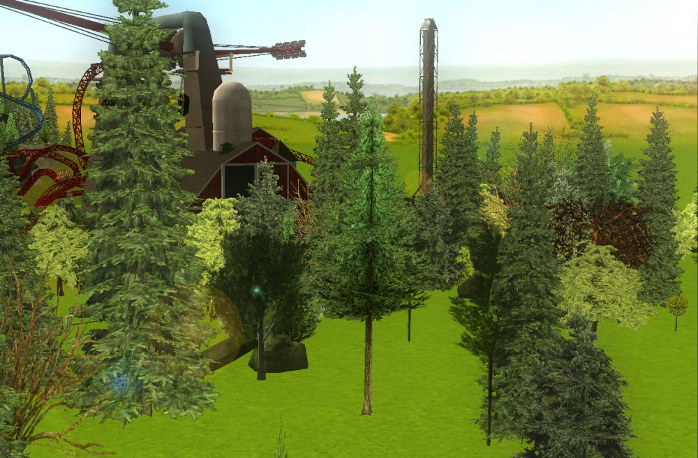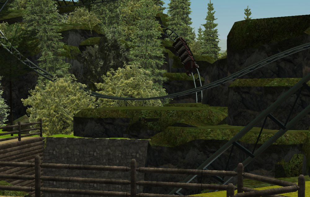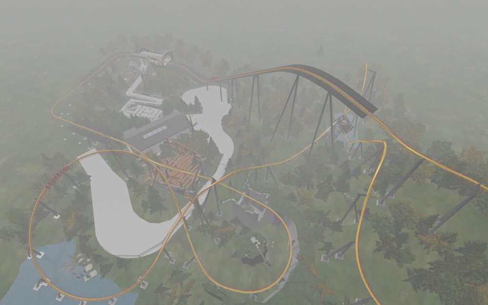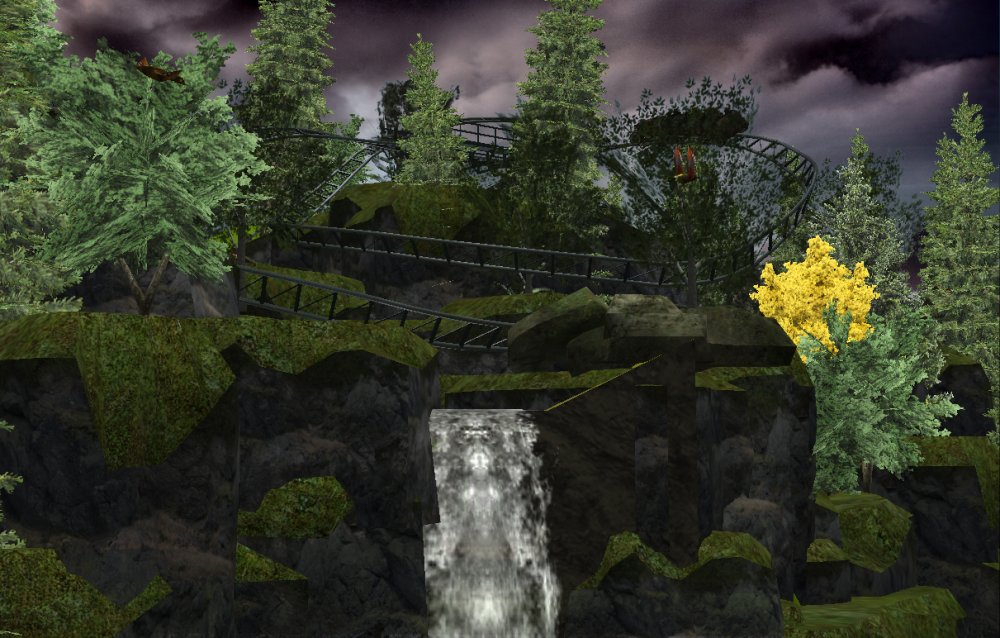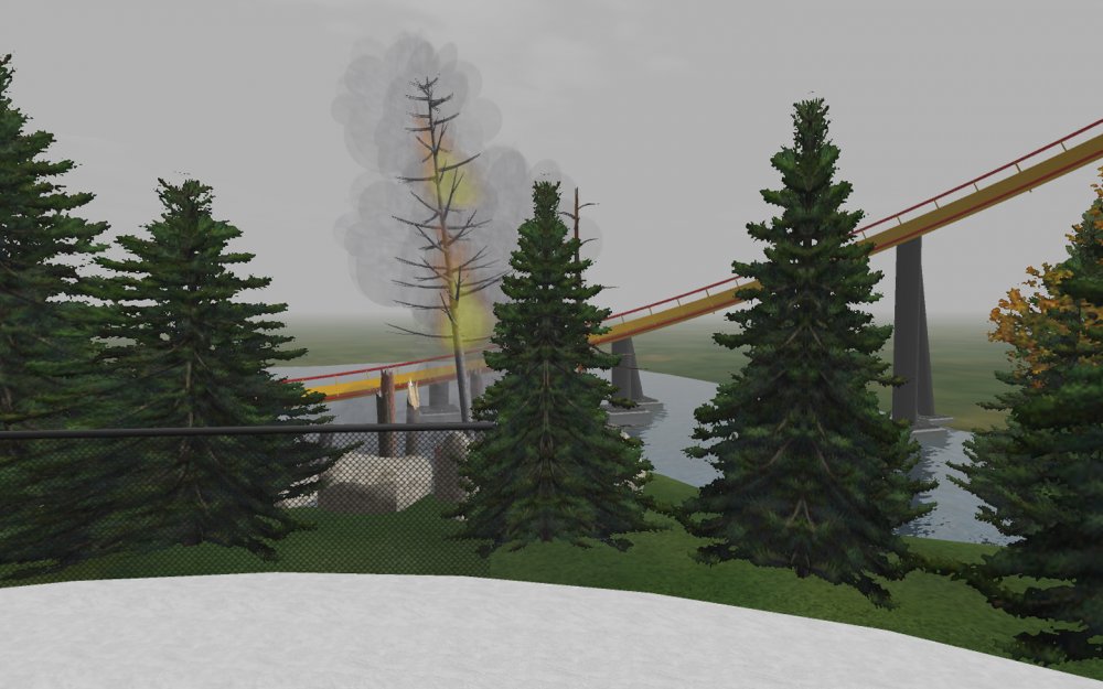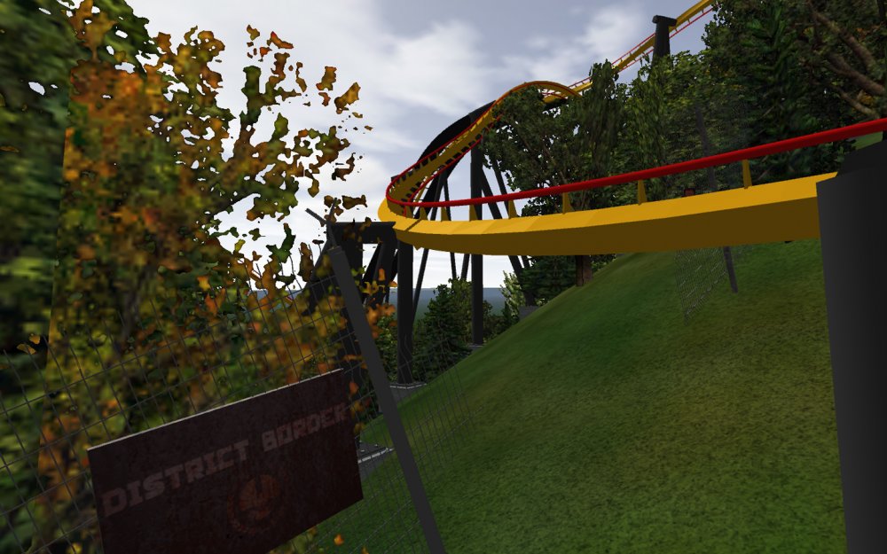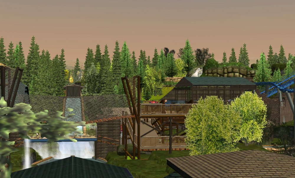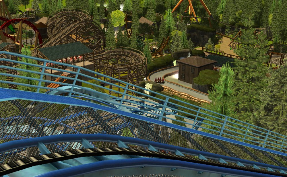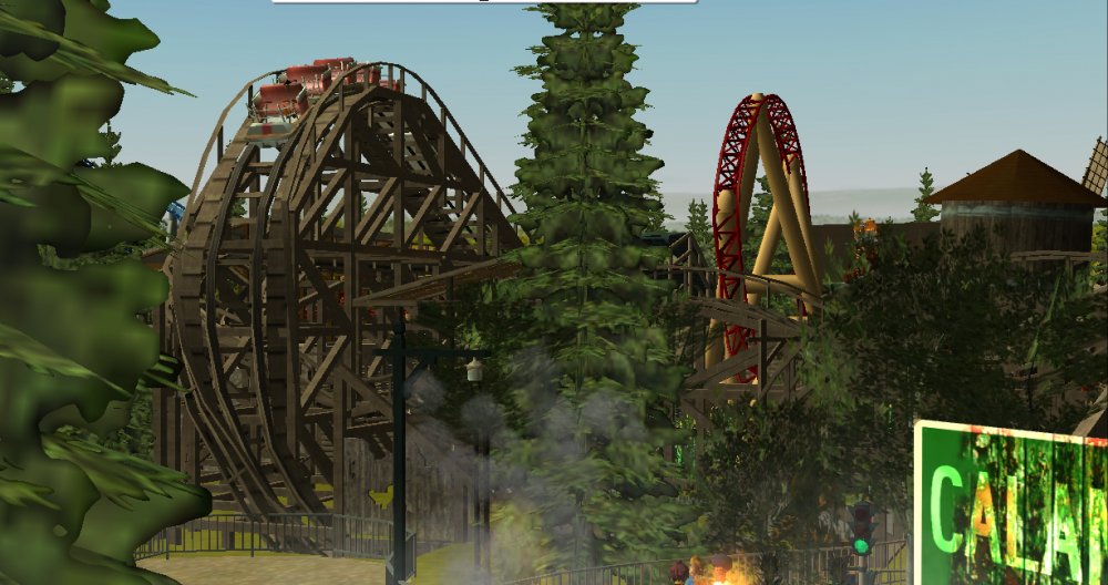 [RCT3] Ash Grove Parkrollerross45 replied to rollerross45's topic in Roller Coaster Games, Models, and Other Randomness Thank You for all the nice comments, Now Lets skip a few months to my Last trip of the season, I will focus on Eagle Piste and a surprise. Which is one of the 3 opening areas in Ash Grove Park, although the smallest in terms of amount of rides with Only Hawks Flight and EP: Thunder Rapids, toilets and 1 shop. Its the largest in terms of land mass spanning over majority of the park, Eagle Piste is the large hill that looms over the Ash Grove park below. The best water attraction experience, Eagle Piste Thunder Rapids takes you on a adventurous journey around Eagle Piste on a route down rapids, round waterfalls and Geysers. But watch out Eagle Piste is under threat by AGP Oil Company, Try and stop the deforestation and pollution as soon as possible. Perhaps getting as soaked as possible you might be able to put of the flames. The Logo and entrance for Thunder Rapids. Queue Line is very odd with a wooden rope bridge taking you over the ride below. The station is themed to be a Watermill at the bottom of eagle piste. Oddly the Lift Hill is at the beginning of the rapids, As You look Up You can see Hawks Flight Swooping above. Looking down from the top you can see Most of Ash Grove Plaza and The finale of Hawks Flight. At The top of the lift, Hawks Flights Turn around flys above Thunder Rapids. Hawks Flight Looks very tall from Here. The Exploding Oil Truck that is causing issues for the habitat of Eagle Piste. The Wildfire AGP OIl company has left behind is disgraceful, escape before the flames engulf the forest. That can be done, the finale drop of 30ft into rapids will sure get passengers soaked. Eagle Piste Thunder Rapids POV: Next ride is the parks largest, tallest and signature attraction Hawks Flight. This is an intense B&M WingRider that takes you around Eagle Piste As you Fly around trees, interact with water and Swoop over Thunder Rapids. Hawks Flight takes you on the wings of a hawk through 4 terrifying inversions,1 that inverts you over a 200ft from the ground, looking over a cliff face and face down. Hawks Flight sure looks intense. Look at that lift Hill and In Line, It sure Looms over the whole park. Hawks Flight POV Spoilers for next year: The Park has announced next years attraction. Field Of Screams live Situated in Calamity-Ville.