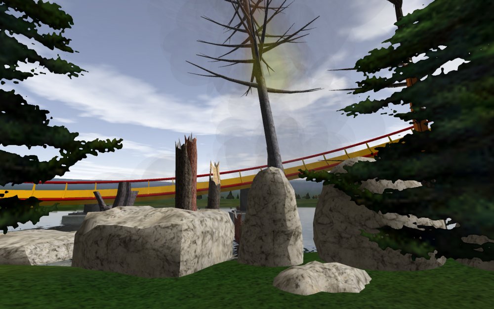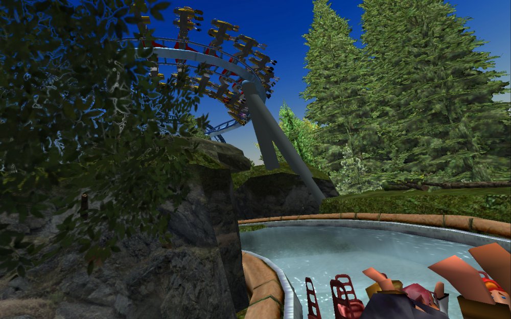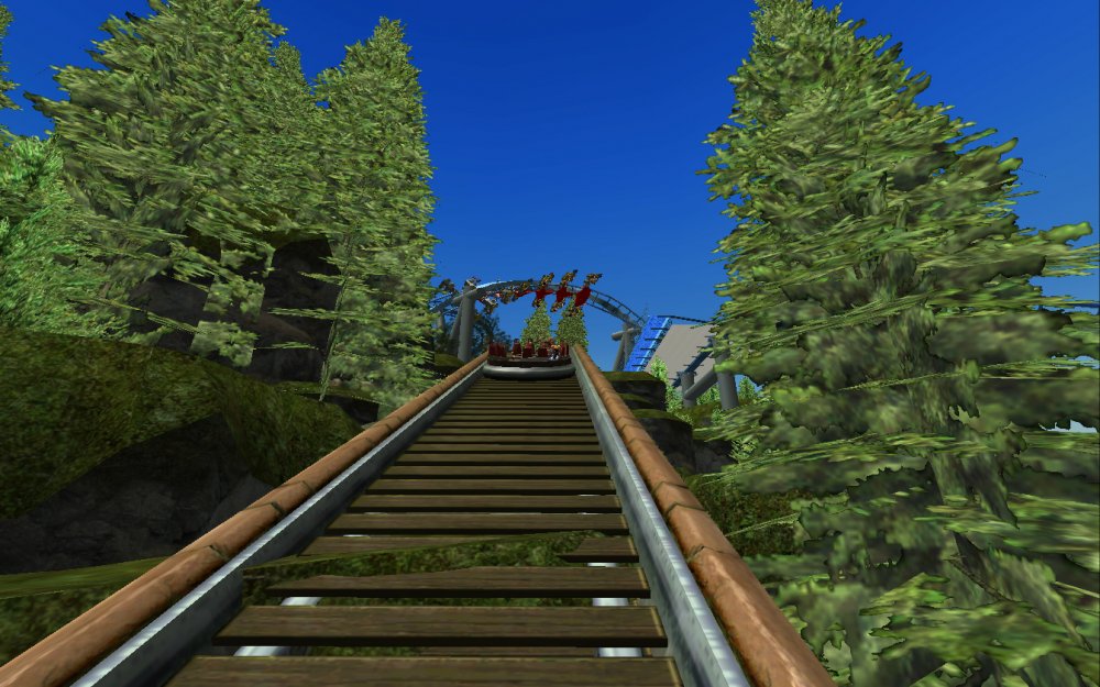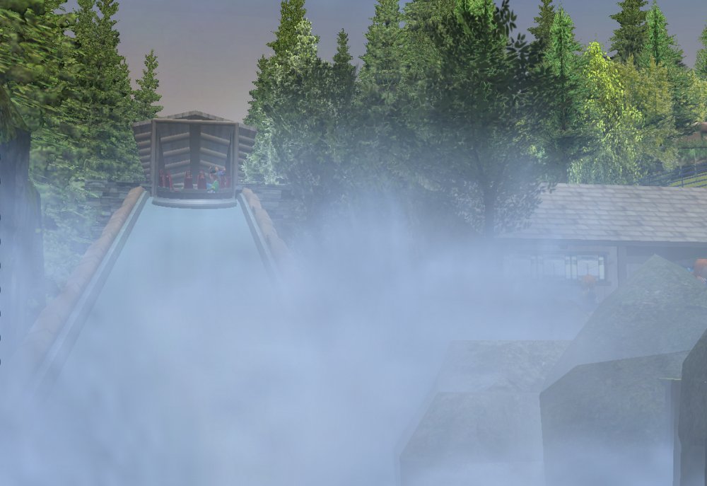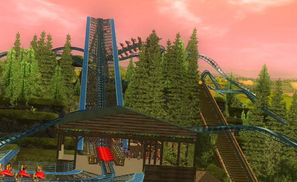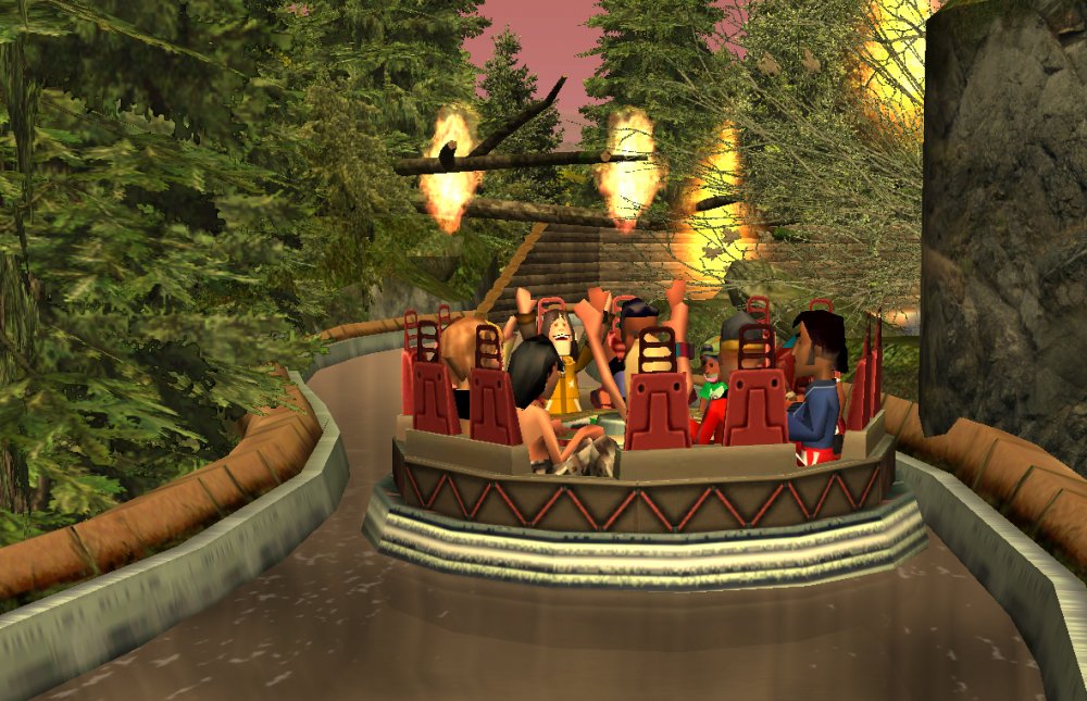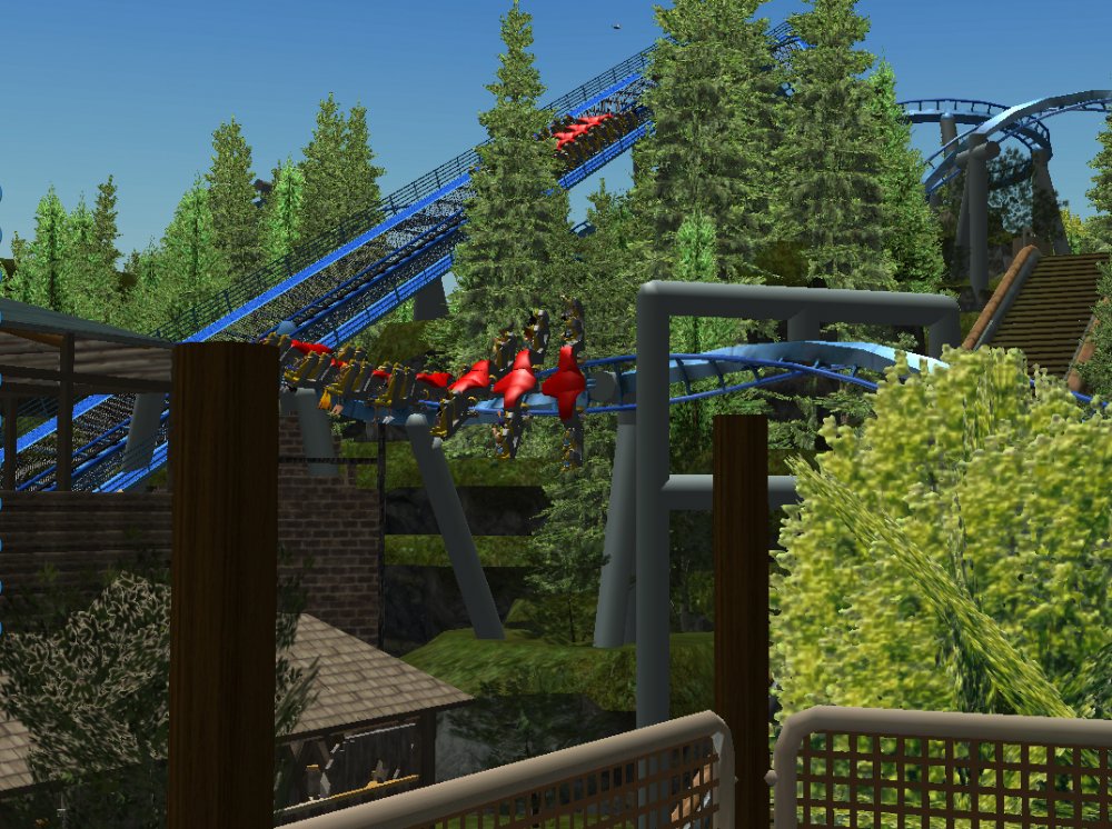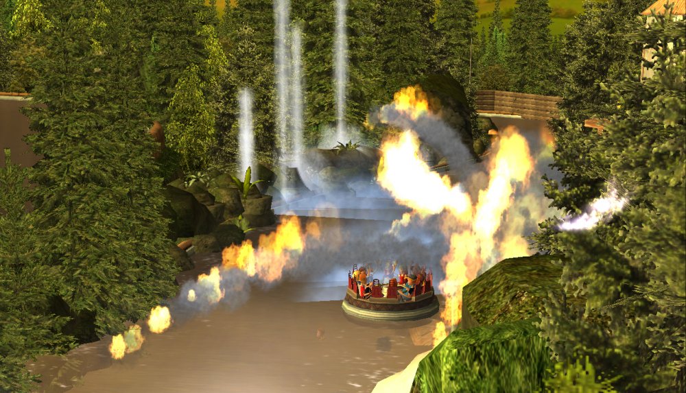 [RCT3] Ash Grove Parkrollerross45 replied to rollerross45's topic in Roller Coaster Games, Models, and Other Randomness Thank You for all the nice comments, Now Lets skip a few months to my Last trip of the season, I will focus on Eagle Piste and a surprise. Which is one of the 3 opening areas in Ash Grove Park, although the smallest in terms of amount of rides with Only Hawks Flight and EP: Thunder Rapids, toilets and 1 shop. Its the largest in terms of land mass spanning over majority of the park, Eagle Piste is the large hill that looms over the Ash Grove park below. The best water attraction experience, Eagle Piste Thunder Rapids takes you on a adventurous journey around Eagle Piste on a route down rapids, round waterfalls and Geysers. But watch out Eagle Piste is under threat by AGP Oil Company, Try and stop the deforestation and pollution as soon as possible. Perhaps getting as soaked as possible you might be able to put of the flames. The Logo and entrance for Thunder Rapids. Queue Line is very odd with a wooden rope bridge taking you over the ride below. The station is themed to be a Watermill at the bottom of eagle piste. Oddly the Lift Hill is at the beginning of the rapids, As You look Up You can see Hawks Flight Swooping above. Looking down from the top you can see Most of Ash Grove Plaza and The finale of Hawks Flight. At The top of the lift, Hawks Flights Turn around flys above Thunder Rapids. Hawks Flight Looks very tall from Here. The Exploding Oil Truck that is causing issues for the habitat of Eagle Piste. The Wildfire AGP OIl company has left behind is disgraceful, escape before the flames engulf the forest. That can be done, the finale drop of 30ft into rapids will sure get passengers soaked. Eagle Piste Thunder Rapids POV: Next ride is the parks largest, tallest and signature attraction Hawks Flight. This is an intense B&M WingRider that takes you around Eagle Piste As you Fly around trees, interact with water and Swoop over Thunder Rapids. Hawks Flight takes you on the wings of a hawk through 4 terrifying inversions,1 that inverts you over a 200ft from the ground, looking over a cliff face and face down. Hawks Flight sure looks intense. Look at that lift Hill and In Line, It sure Looms over the whole park. Hawks Flight POV Spoilers for next year: The Park has announced next years attraction. Field Of Screams live Situated in Calamity-Ville.
