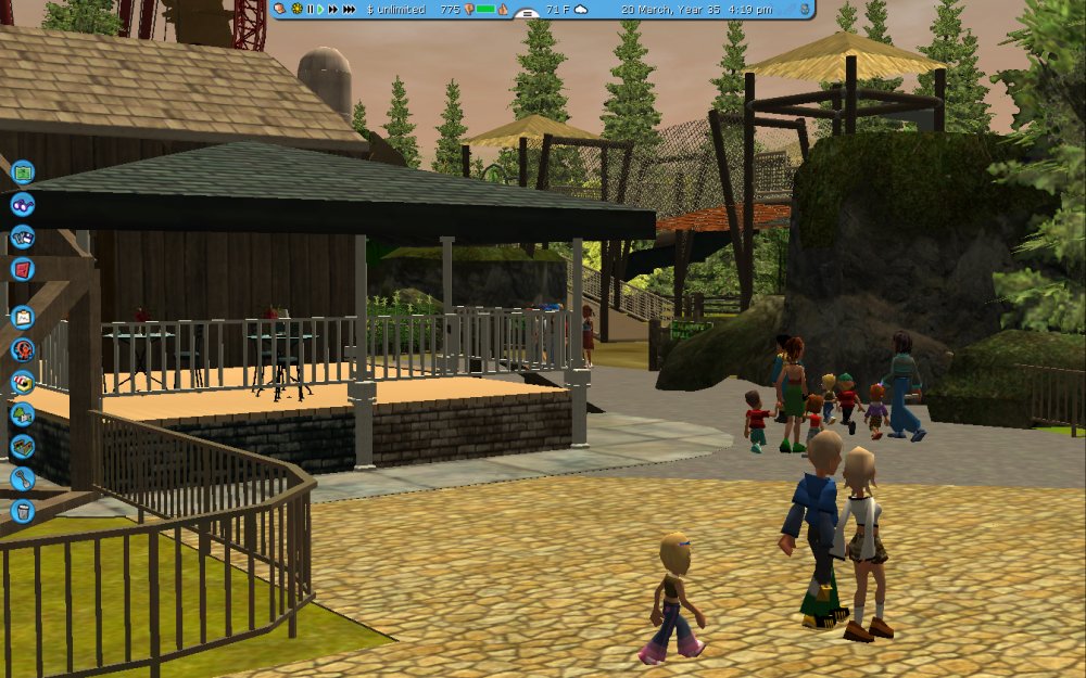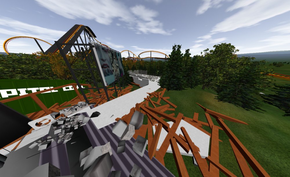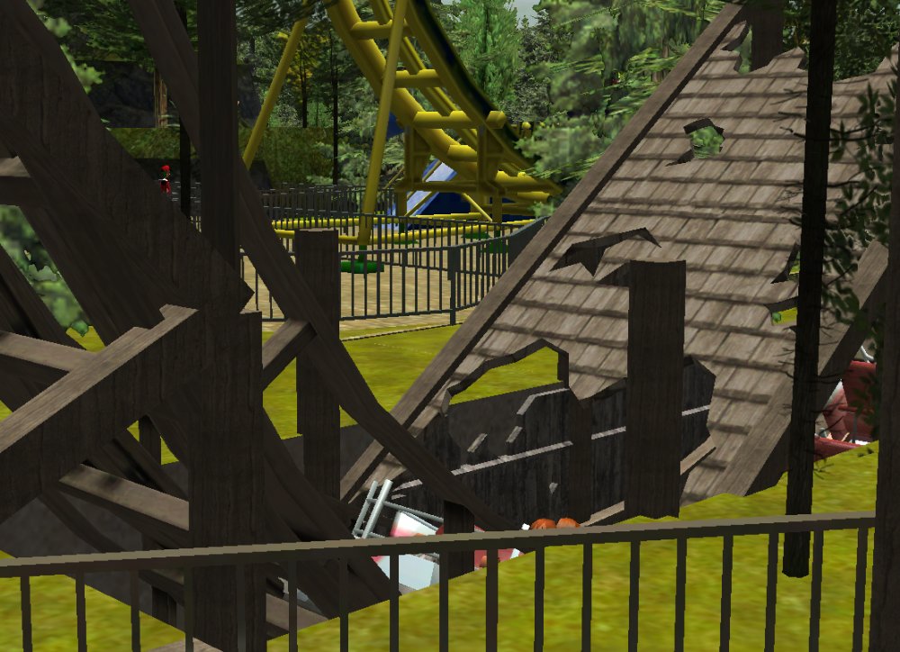 [RCT3] Ash Grove Parkrollerross45 replied to rollerross45's topic in Roller Coaster Games, Models, and Other Randomness Hello and Welcome I am Ross Martin the Owner Of Ash Grove Park Mania Fansite, Today is opening day but as being the official Fan-site of the park we have been given a behind the scenes morning before opening day at Noon. We arrived at 10am with a few people already there waiting for opening. The queue building up for the opening ceremony at noon. The First part of the day we got to head to Hawks Flight and walk up the Catwalks of the lift hall to get some great arial shots. The entrance to Hawks Flight. Looking down towards The Twister and Thunder River. Taken from MCBR catwalk you get a clear view of Barnstormers brake run and the indoor section towards the 2nd launch. After this we headed to CalamityVille for some ERT on The Twister before heading to the entrance to watch the opening and get to experience all the rides in opening glory. Well I noticed something as we walked by, seems as if the park already has plans for next season? I wonder what it is? ERT here we come. The Queue line takes you right under the lift hills supports before entering a destroyed building then up into the station. Looking down from the station at the car racing past the destroyed church. Although Family aimed its a fairly intense coaster. headchopper More coming soon.