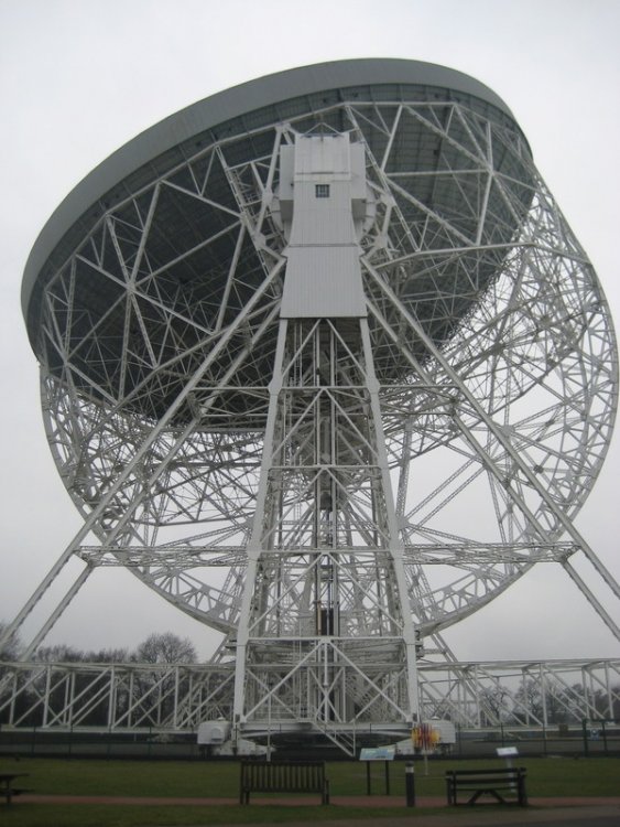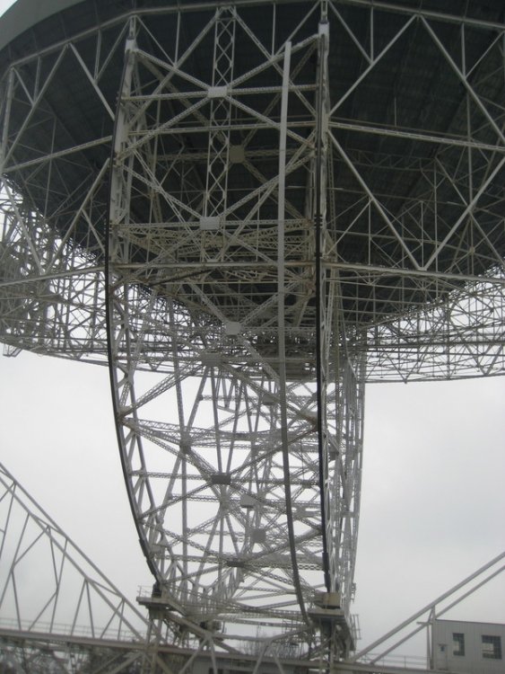 Sorry this is a bit late and it's my first attempt at a photo TR but please enjoy: Whilst everyone else was either enjoying the new coaster at Alton Towers or soaking up the sun at the west coast bash, I was at Jodrell Bank in cheshire uk looking at a rather large piece of engineering. For those of you that don't know Jodrell Bank is the home of a large radio telescope, built in the 1950's to monitor radio waves in outer space, it picked up the sputnik satellite and participated in the moon landings. It's still operational today and we saw it scanning the skies when we were there. Anyways hope you enjoy the pictures Pete it's big E.T won't be phoning home it really does tower over you the pivots were taken from WWII battleships, still going strong today. Grit not trash! The telescope is run by the University of Manchester, the blue is their corporate colour. upskirt shot. this supporting structure is not original and was added during a refurb in the 70/80's through the trees, the site is now home to another couple of (smaller) radio telescopes.
