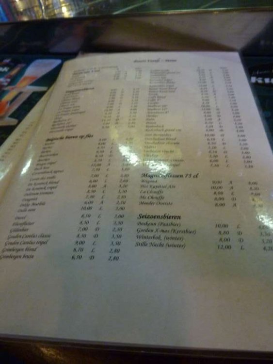 Trip 2: Mini update Beer evening (Lommel - 1th May 2010) A while ago, there was a beer tasting evening in my city. There were about 180 beers from big brewiers, and from people who just brew as a hobby. La Divine was our first beer. Not a bad beer. (9,5%) Schuppenboer was the best beer I drank that night! A very nice beer with a good taste. (8,5%) Some numbers are missing, so those beers where sold out. Offcourse some breweries had more stock than others. You could find the numbers in a book, so you know from which beer it was. The red numbers are the beers from the barrels, and the white ones where just from the bottles. The great book of beers. Balthazar, didnt really liked it. (9%) Friends and family of me. Straffe Hendrik. (9%) A food cart outside, cause if you drink, you get hungry. Went back 3 times. Bosprotter; not a great beer, but not so bad either (9%) Hertenheer, from the same hobby brewery as Schuppenboer. Liked their Schuppenboer better... (6,5%) Hopus, I didnt had one (8,5%) Brugse zot, a light beer which is not bad (6,5%)