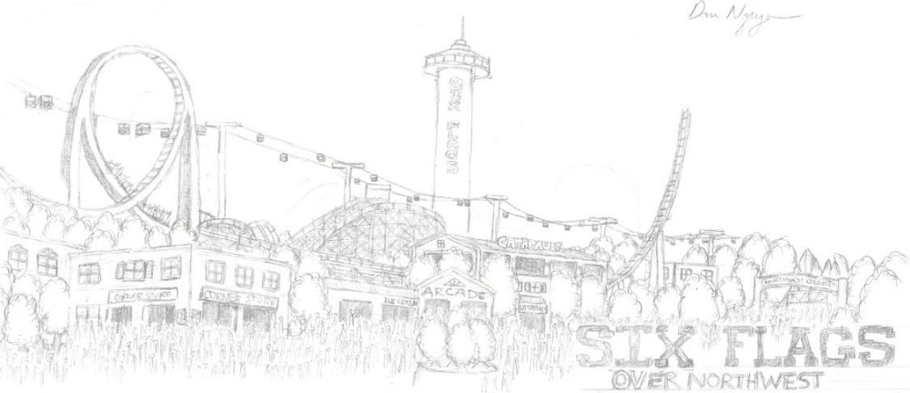 Dan's Theme Park Artwork Six Flags Over Northwest An original SF park opened in 1975 in Washington. I'll post more when I can get to them. Catapult (I noticed that I spelled the name wrong) Superman Fighter Coaster -