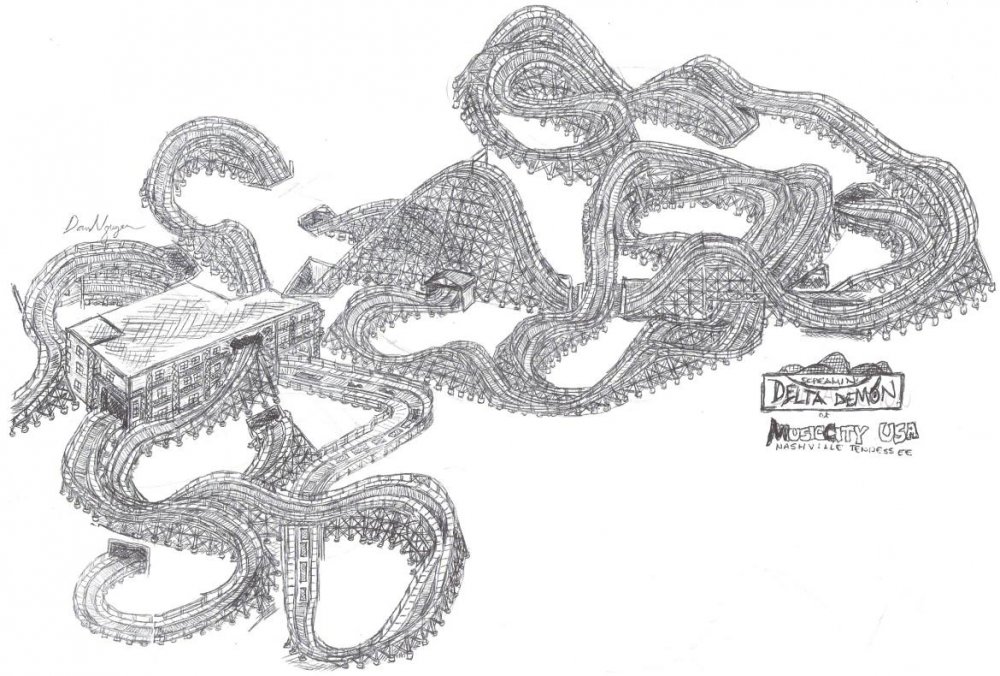 ^ I'll post more DK pics when I can get to them. Dan's Theme Park Artwork Random Pics I don't post many wooden coaster pics so I'll post a few more here. Sasquatch - A GCI wooden coaster for a future planned park. Music City USA's custom GG woodie, Delta Demon is based off the original Screamin' Delta Demon at Opryland. -