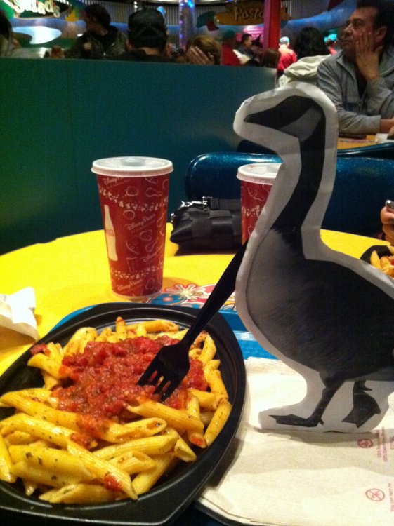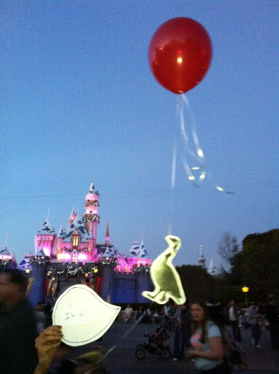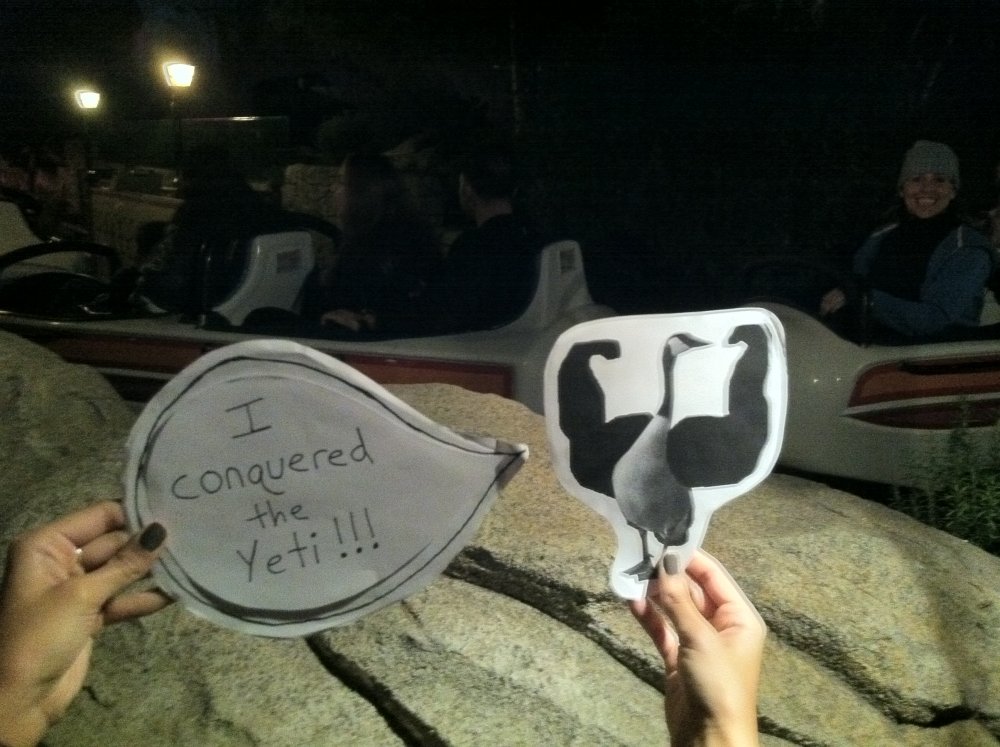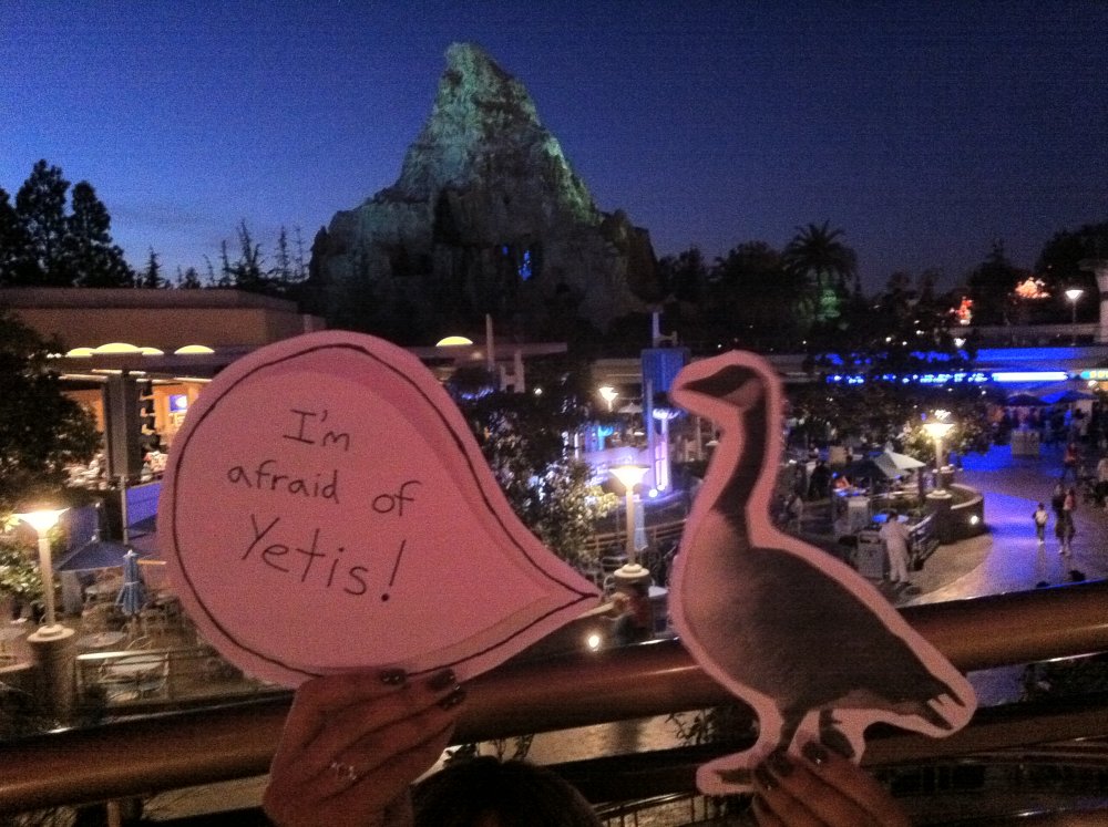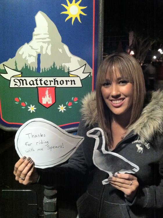The Matterhorn was my first roller coaster, so I'll be honest, I'm going to miss these bobsleds. I have lots of fond memories riding in them with people I care about! But regardless, I'm still excited to experience the new bobsleds, and hope the ride gets some much needed TLC in the coming months. Here's a final look at the old Matterhorn bobsleds from their last operating day (with special guests Gertrude and Spears!): Our adventure starts somewhere in Orange County where Gertrude tied a balloon to herself and took to the skies! What is going on here??? It would appear that Gertrude is sneaking into Disneyland! Why would she want to visit Disneyland tonight? Gertrude is at Disneyland for the last day of the old Matterhorn bobsled cars. Don't worry Gertrude... These cars hold 2 people per seat, so Spears will ride with you and keep you safe! But first, pasta break! Gertrude and Spears are in line. Some shots of the bobsleds from the line... Little known fact: Gertrude has never ridden the Matterhorn before. Another shot, head on. Light speed to Endor!!! The current seating arrangement is great for lots of activities, such as putting your friend's hood on. One last shot from the line. Those in-the-know choose the Fantasyland side! I assume these signs will be coming down soon. Gertrude and Spears are almost there! "There isn't a Yeti in there, right?" asks Gertrude. Spears doesn't know what to say. Gertrude and Spears are going up the lift hill! Ahhhhhh!!! A Yeti!!!! AHHHHHH!!!!! Gertrude survived! But only thanks to Spears keeping her safe. Yay for 2-per-seat seating! Bye bye old and busted! Way to go Gertrude! You rock! Congrats Gertrude! Thanks Spears! Bye bye old Matterhorn bobsleds, we'll miss you! We can't wait to see the new bobsleds and whatever other changes are in store for the Matterhorn! Thanks for checking out this trip report!