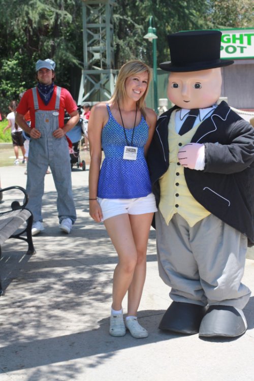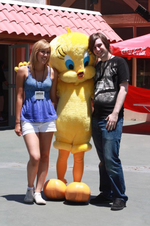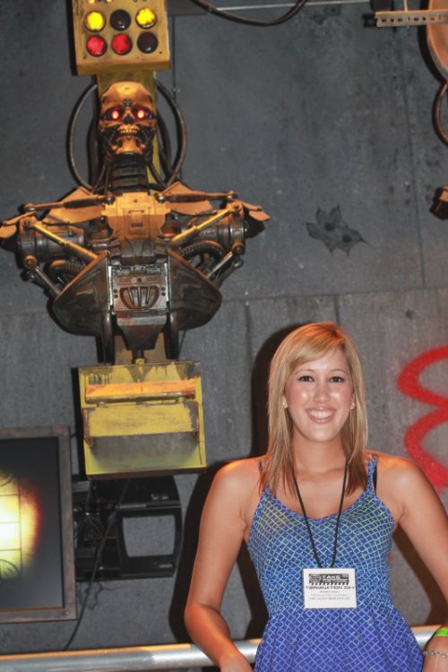 Nice pics Robb! You captured our first ride ever on Terminator! (We're in the front row of the "Awesome hair in the front row!" pic hehe). Btw, is there any chance I could get the high resolution version of that pic? That pic was also taken right before Brittney got her first bee sting . Right when the fire shot out on our first ride, she got stung by a bee! We initially thought it was a spark or a flying splinter of wood since we didn't see the bee itself, but Britt went to first aid since it hurt and we didn't know what it was, and they confirmed it was a bee sting. Anyways... back on topic... As everyone has said already... this event rocked! I had only gotten an hour of sleep the night before, and was basically a zombie by the end, but it still was amazing! Robb and Elissa's party was a great place to be beat the heat in the afternoon... and it was fun seeing some of the TPR dvds in the theater. We're always shy so we didn't really talk to many people, but the party was still fun and we really appreciated it. Thanks Robb and Elissa for giving us somewhere fun to go rather than melting in the sun during the middle of the day. Once the sun set, the weather became just perfect. We headed over to terminator at 9:45 and got in line a little early for night ERT. At first, it really looked like it was going to be a flop. We got in line at 9:45 and didn't get into the preshow rooms until 10:15. We had to watch the preshows, and eventually got on the coaster at 10:30 (they were running half empty trains while we were in the preshows). So, a 45 minute wait was somewhat disappointing, and at that point it appeared we'd only get about 2 rides total in before they closed... But boy did magic mountain turn it around after the first ride. Once the GP left, and they opened up the preshow rooms and let us walk right through, things flowed perfectly. (eventually, we found the secret staircase entrance too, so we could just walk right back around after riding). They decided to let ERT go an extra 30 minutes... which more than made up for the problems. We had a solid hour with 0 lines... it was a total blast. The ride operator was hilarious... and everyone had an amazing time. I got 11 rides in for night ERT, and Brittney got about 8 before she started feeling sick and sat the rest out (she gets motion sickness if she rides too many times in a row). All in all, it was a wonderful day, and an especially wonderful night. Terminator really comes to life at night. I love that the ride is kept completely dark, which makes the red lights in the tunnels and the fire stand out that much more. I've only ridden woodies in California, but without a doubt Terminator is my favorite. Congrats to Magic Mountain on a real winner of a ride. And thanks to Magic Mountain, Robb & Elissa, and anyone else involved on a real winner of an event. A few random pics from the day are below... Bonus Pic #3: The tram ride became the highlight of our night, and was a great end to a great day at Magic Mountain! When we got off, the tram operator thanked us for riding the party bus lol. Bonus Pic #2: See!? Everybody really was dancing around. It's bonus pic time!!!! Bonus Pic #1: On the tram ride back to our cars, they were playing "We Like To Party" by Vengaboys. Everybody started dancing around! The back half of the last train of the night. I'm pretty sure this is the last train of the night as it pulled back into the station. Everyone applauded after a great hour of ERT. My favorite picture! I'm pretty sure this was the last train of the night. Brittney took all these night time ERT pics while I continued to ride. Here's a train creeping up into darkness. I love that there's almost no lighting on the ride. And finally, nighttime ERT!!! It was pure amazingness! Bumper cars! Brittney's car was broken and went SUPER slow (they took it into the maintenance shed after she got off). Needless to say, she got bumped like nobody's business. We got back from the party just before sunset. Here's superman at sunset. Taken while driving to the party at Robb and Elissa's. Why did I include this picture, you ask? Well, why not? We took this pic over in Thomas Town. I love the conductor in the background! He was like 20 feet away, but still posed haha. Tweety showed up at lunch, so we got a pic! Vegetarian lunch (we didn't have much cuz we were planning on picking up some food later). The free unlimited fountain drinks were the greatest thing ever on such a hot day. We did have a Magic Day! Thanks! Brittney with the terminators during morning ERT. I had seen pictures of the theming beforehand, but I thought it was even cooler in person. I thought the theming was really great for Magic Mountain, and I hope they continue to do more of this in the future. (I would recommend turning down the volume in the last room though) On the way to Terminator we saw these Geese lined up to ride the go karts. And the funny thing was, from the front of the line they started walking out onto the go kart track to go ride. But we didn't wait to watch them ride, because we had morning ERT to attend. Before the park opened, this bee kept landing on the bag we had our sunscreen in. Apparently it was foreshadowing for what was to come! -