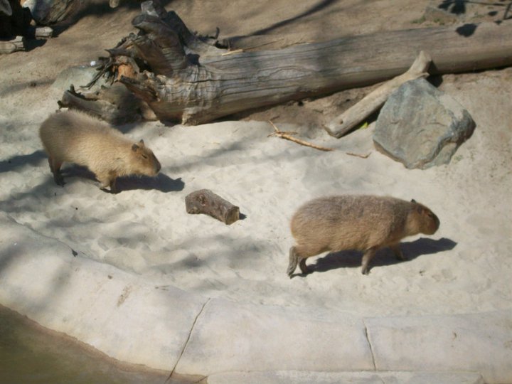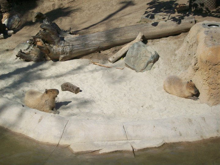 Yeah yeah, I know there aren't any rollercoasters here, but they do have a whole bunch of cute and fluffy things! There's really nothing to write, since it's a zoo. I'm pretty sure you'll know what you're getting when you walk inside. I will tell you, though, that this place is huge and it is a constant up and down hike. If you're not big on cardio, this is not the place for you, haha. Now, on to the pictures of cute things! This guy was hanging out on a tree right by the entrance. I'm sure he's the PR department. Frollicking! This guy enjoyed hanging out in his tree. Turtle must escape! Can't do it! ACTION SHOT! Hungry hungry elephants. These guys were fighting over whose trunk got to go into the hanging barrel. We got to the big cats just in time for them to enjoy their huge slabs of meat. Om nom nom... Camel. This guy and the other camel had a pretty big fight a few minutes before I took this picture. Hey, Monkey, make sure that Otter stays in his dome. Oh, great. You let him out. Good job. Capybaras!!! Capybaras sure are lazy. Are these white Zebras with black stripes, or black Zebras with white stripes? Baby ducklings and mama! I found Pumbaa, so where's Timon? Found him! I mean...them! And one more shot of the Meerkats to close it out.