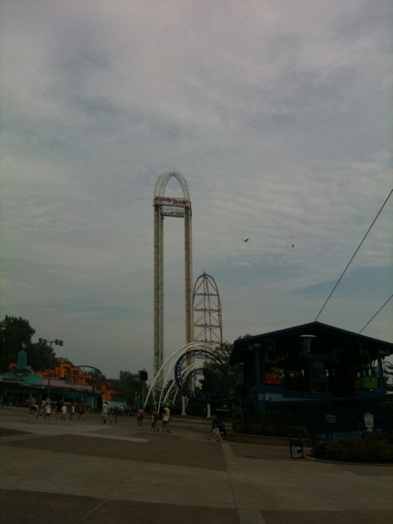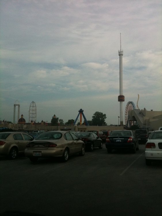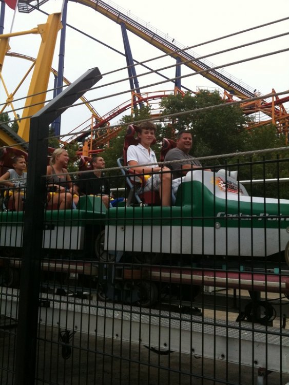 Hello there TPR! It is me 1pizza14 and I will finally be posting my first ever TR on TPR. Enjoy! On monday July 12 2010 me, my mom, and my sister decided to take a 2 day/3 night trip to Cedar Point. We live in Toronto Canada so it was about a 6 hour drive with a few stops. We were staying at the Castaway Bay Indoor Water park. Monday: We left Toronto at 10 am and were on our way to Ohio. Border control was TERRIBLE!! We had to wait about 1 and a half hours to cross. A few hours later we arrived at Castaway Bay... We checked in and went to our room. It was not very pleasant. The room had disgusting red carpet and the room was very small and dingy. At $300 a night.. we should have gone to somewhere else. After we dropped our bags we were all starved so we decided to hit up TGI Fridays right next to the hotel. We arrived at TGI's to find a 50 minute wait. We decided not to eat there and we just had some snacks in the indoor water park. We then decided to check out some of the slides. In the water park there was... 3 body slides, a master blaster type slide, a wave pool, and a water playground with 2 more body slides. Overall the water park was quite nice.. but it was lacking some large slides. Most days the water park was quiet after we visited cedar point. It was 10:00 (water park closing) so we went back to our room and went to sleep getting ready for the next day. Tuesday: We woke up grabbed our bags and went down to the hotels breakfast. The breakfast was $10 per person and it was a standard continental breakfast which should have been free. At 8:00 we headed out to Cedar Point. We were so early we parked directly in front of the entrance. It was only 8:15 at the time and the park opened for hotel guests and platinum guests at 9:00. Right at 9:00 we sprinted to Millennium Force only to find out it was broke we then ran off to Maverick which was open and had a 30 min wait. Maverick was a VERY fun ride. It was long, twisty, curvy, and the entire ride was surprising. We got off of Maverick just before 10:00 so we headed over to dragster. When we arrived there was a massive queue of people running all the way to the Iron Dragon pond/lake thing. We were informed the ride is testing and will open in 15 minutes so we waited. When the ride finally opened it was about an hour wait. I chose to sit in the front since it was my first time on Dragster. Dragster is an amazing feat of a ride but it is short. :/ We then went on the Corkscrew which was very very painful. After that we decided to go on Disaster Transport which is the most sketchy ride I have ever ridden! We walked right on and went up a rusty lift hill that made really weird noises. The rest of the ride was weird, bumpy, and jerky. We did the Wicked Twister and the Giant Wheel and decided to have lunch. After lunch we went on the Cedar Creek Mine ride which was a nice relaxing ride through the forest. After we did Gemini which was a very fun ride because you are racing the other team. In the end our train won. After it was getting very hot (even though it was overcast the entire day) So I wanted to ride Shoot The Rapids. But guess what... it was broken after that we took a ride on the blue streak and headed back to our hotel for dinner. Most rides were walk ons that day and I really enjoyed my first day at Cedar Point. Now on to day 1 pictures. The park from a distance Raptor as we are waiting to go in to the park Getting closer to Raptor.. notice the overcast yet it didn't rain once The Overcast Skyline The Millennium Force sign.. too bad it was broken Force towering over the park Yay Maverick... surprisingly this was the only picture I took of Maverick that day Its hard to believe that this is a roller coaster! Me on the Dragster.. The guy in the brown shirt next to me snuck on from the exit somehow? STR was broken that day :'( I will leave you with this shot. Any feedback is helpful. Day 2 coming soon.
