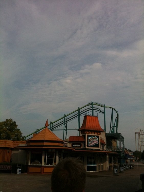Sorry about the delay in this update I have been quite busy recently. Day 2: We woke up Wednesday pretty tired at 8:45. We decided to go to Mcdiddys for breakfast as the hotel one wasn't that great. After some hotcakes at Mcd's we headed out the the park. By the time we were at the front gate it was around 9:15 so we decided to head out to millennium force as it was broken almost all day yesterday. Millennium Force had about a 45 minute wait but I thaught it was worth it. I personally enjoyed Millennium Force quite a lot. I sat in the second row but I didn't seem to get that much airtime (maybe because I put my lapbar down too tight). Anyways MF is quite a good ride but IMO I think it might be a tad overrated. After MF we headed over to Mantis. Mantis was an excellent ride which will make Mantis one of my favorite stand up coasters. Mantis had about a 25 minute wait but it was well worth it. Next we went over to Iron Dragon. Having only a 5 minute wait for the front seat we went on it 2ce. Iron Dragon is a pretty fun ride through the trees and then the pond helix at the end. I really do hope Cedar Point doesn't take it down. After we took the train over to the Mean Streak stop and got off. I got some interesting shots of MF and Maverick while on the train. We then went over to Mean Streak which only had about a 15 minute wait. I personally thought Mean Streak was one of the best woodies I have ever been on. I found it quite smooth however most members on TPR will disagree completely. It was probably smoother because i'm used to Mine buster and Wild Beast up at Wonderland. Anyways after MS it was time for Skyhawk which was almost a walk on. Skyhawk was VERY fun. It swung very high and had quite a few gs as you were swinging though. After Skyhawk it was getting hot so I went over to see if STR was open and well... IT WAS! I was also happy that Cedar Point would let you ride barefooted so you wouldn't have to get your shoes wet (cough Wonderland I hope your listening here). I went in the single rider lane as my mom and my sister didn't want to ride. Anyways the only problem with STR is that the last seat of every boat was closed. Also STR doesn't have air gates you have to push through yourself and before the boats are dispatched a castmember has to check if each gate is closed. Anyways there were only 5 single riders in front of me however it took almost 25 minutes surprisingly. It seemed that everyone riding STR was with an evan number. Anyways I did manage to skip a 1:30 minute line. STR was a VERY VERY VERY fun ride. Probobly the best flume type ride I have ever been on. I really liked the beginning where you were in the misty tunnel. The other thing I liked is that you dont get 100% drenched like on Snake River Falls. STR was an amazing ride. We then decided to have some lunch. After lunch we headed over to the Power Tower. We did shot 2 times and drop 1ce. Overall Power Tower isn't amazing nor that scary. My mom and my sister were not feeling too well (probably the heat) so I told them to wait as I rode the Magnum. Magnum was awful. I found it really bumpy and painful the entire ride. The tunnels also KILLED your ears with the sound. Overall Magnum is not a very good ride. I was also dissapointed because I couldent see Canada. Overall I had a blast for my first time at Cedar Point. I have wanted to visit there since I was a little kid and now I finally have. I really hope to return some day. Overall I did all coasters except for Raptor, Jr Gemini, and Woodstock Express. Thank you for reading my first TR. Now on to the pictures... As you can see its a beautiful day. TAKE THE TUNNEL! Now thats steep another angle The train as it flys by Unfortunately I didn't get a chance to take that many pictures on day 2. Here are some of the Castaway Bay pictures I took. The kids waterhouse A picture of the master blaster slide ( I know its blurry) The end of the 3 body slides A water basketball court I will leave you with these 2 other slides. I hope you enjoyed my TR to Cedar Point. Thanks for reading
