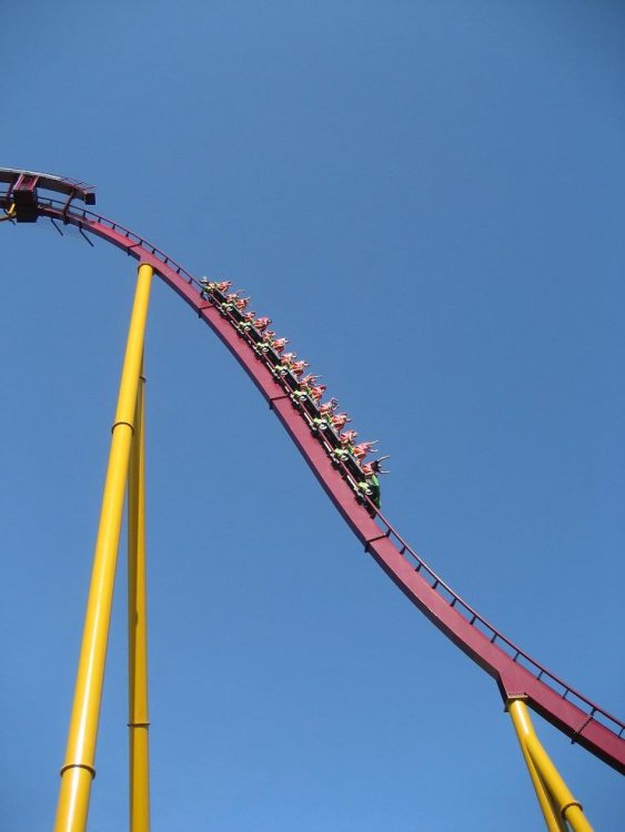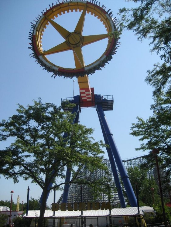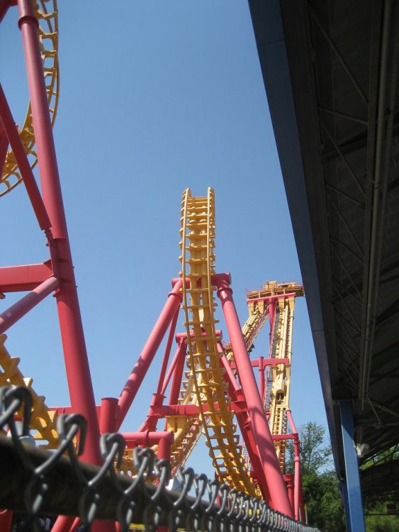 Part ONE First I want to say thanks to Homeboy23,monster99,DiSab for the tips they gave me. First was fire hawk we walked right on it was awsome never been on any thing like it going up the lift hill backwards on your back crazy! second was flight of fear was not ready for that we walked right on (so i did not get to see a train leave out of the station) Till I was on it wow was not expecting that great ride #3 the oldest wooden coaster at KI the racer got on the red (blue was not running) fun ride got to see the walk of shame first hand never seen that before but i give it to the ride OP he tried for like 5 min to get the seat belt around even got a extender and still could not get it to fit the guy finally said forget it and left #4 deliruim great flat ride lots of air time big fun #5 drop tower do I have to say more Im tired Part two coming soon I bet you can't wait there just might be a donkey some toads that seemed to be every where I was even the water park! weird! Had to take the pic Thats me front row with my arms up
