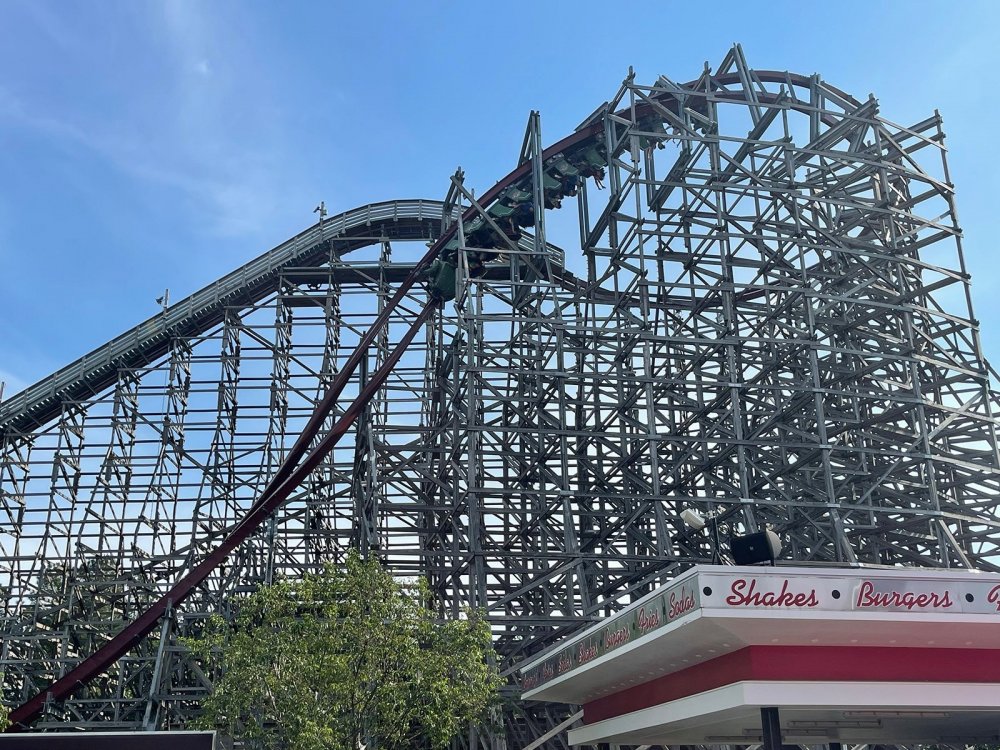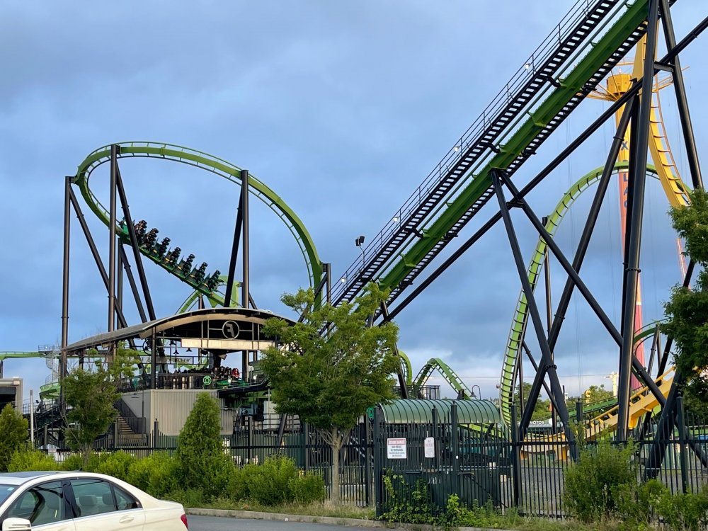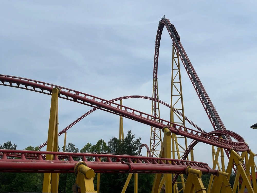 We visited the park last Saturday. Operations in the park ranged from pretty good at Twisted Timbers to "meh" at Racer, Dominator, and Reptilian to absolutely terrible at i305 and Flight of Fear. I've always liked KD but if I had been living under a rock for a year and you told me Six Flags bought it, I'd believe you. We had the benefit of FL+ as we do pretty much everywhere we go, so we still got as many rides as we wanted for the most part. It was also my first time riding i305 since 2019, as we were unlucky enough last spring to visit on a weekend it was down. i305 is still a religious experience and a top like 3 coaster. But wow were operations appalling and the coaster looks like crap. Almost every time, they'd just be locking restraints when the other train stopped in the transfer block. There was no station control whatsoever so the wait for Fast Lane was about the same as the regular line. Getting into a row was a shit show. Half the day, the person at the entrance either wasn't trained in the loose articles policy or didn't care, so bags kept making it into the station, causing conflicts between guests and staff that could've been avoided and making the wait time even longer. i305 also looks like it's aged 10 years in 3. The track paint is badly faded and the trains looked like they needed a pressure wash or 3. However, i305 was running amazingly, so if all their budget goes into keeping it running well, who cares about the paint. We got about 5 rides throughout the day and I can't believe how smooth it still is 12 years on. I really hope Intamin manages to sell another Giga coaster one of these years. I also always seem to forget how wild Dominator is. It has an intensity unmatched by any other B&M flourless and generally kicks ass. Same thing here, though. The trains and restraint covers looked like they'd just been shipped in as used items from Six Flags America. Operations here were better but the crew still got flustered if there was any situation such as someone not fitting in a seat, and operations would slow to a stop for a few minutes because of it. It's like all the training went to the employees running Twisted Timbers. They'd count down the gates closing, instruct people to do the usual "seat belts first, lap bars second", and 4/5 times they'd be dispatching by the time the other train was returning. I also finally found a way to enjoy the coaster a lot more. I love airtime as much as the next person but there's a repeated violence to TT that's always been a bit much for me. If you ride in the second to last car, it becomes way more re-rideable. Now, some photos. The entrance plaza, signs, and Eiffel Tower with trees in full bloom. I accidentally made my bf a little bit nervous to ride i305 for the first time, so we warmed ourselves up by getting Dominated first. I love this coaster so much. Parks think we want more B&M Gigas, but what we really need is more of these. Nothing like a little booze to take the edge off the shit operations. Getting Twisted after getting a little twisted. This cat just hanging around in the park was the highlight of our day. Another view of Dominator. This seriously blows the rest of the B&M floorless coasters away. We actually forgot to get the credit on Tumbili. But from what I've read it wasn't on Fast Lane anyway. It's a photo finish! I love i305 so much and overall we had a good day at the park. But they need to do some serious work with employee training. And Cedar Fair should give them some paint/pressure washing budget.