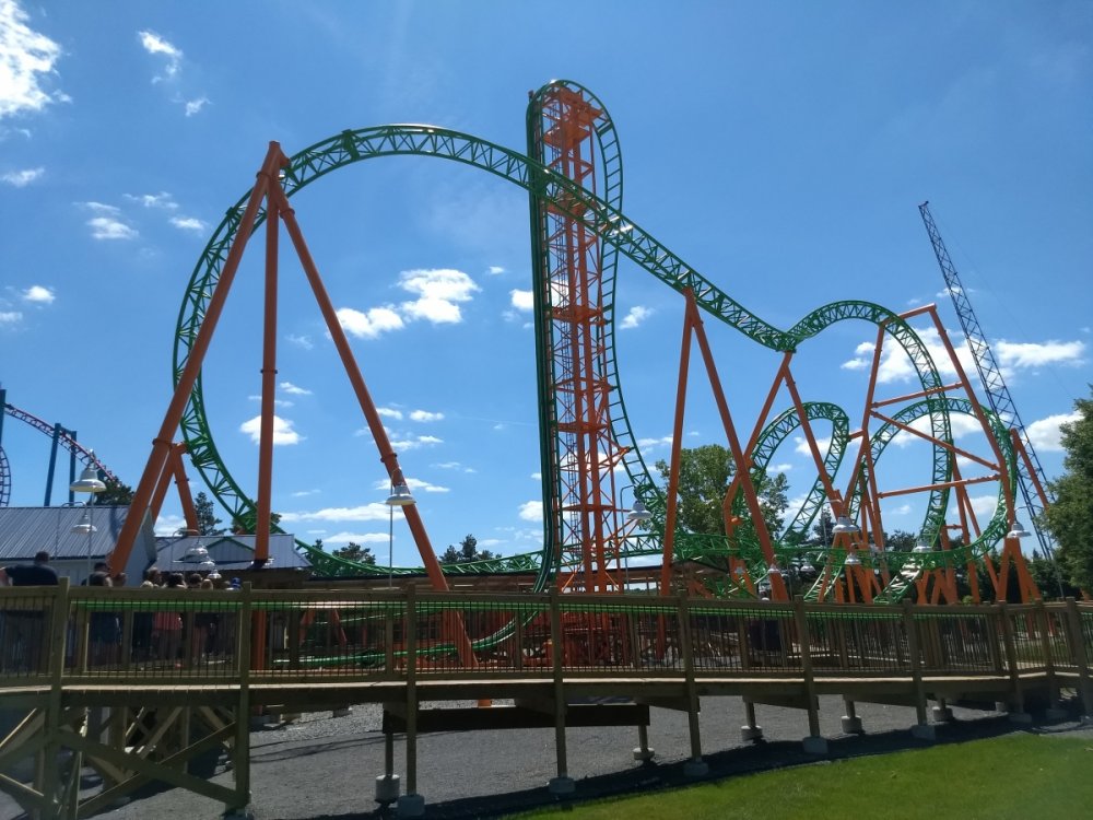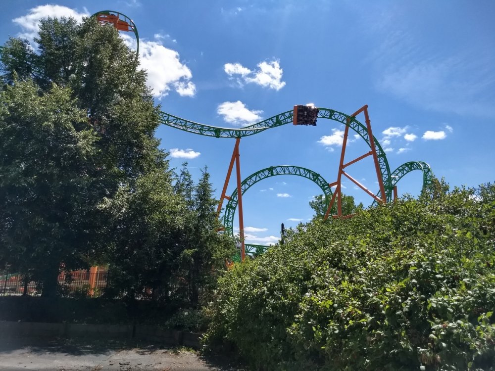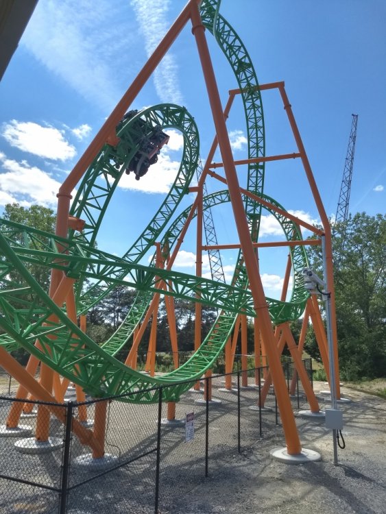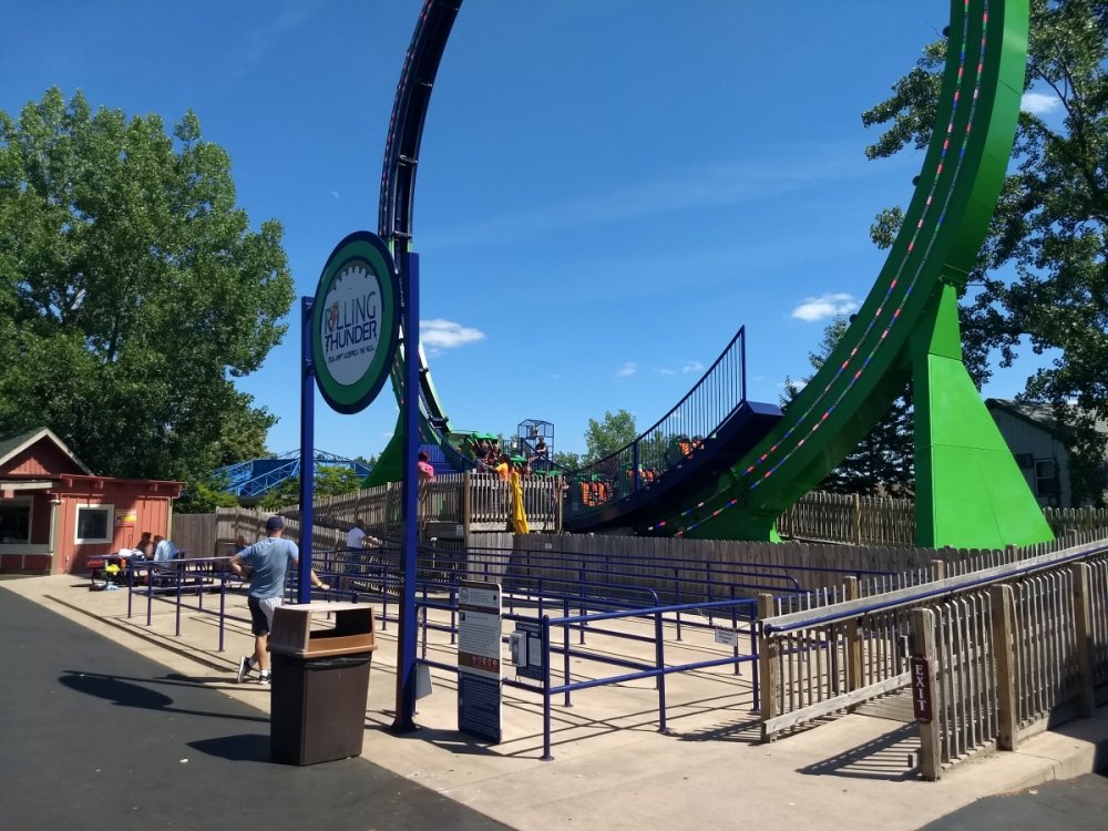Today was my first time going to Darien Lake since the Motocoaster opened. I wouldn't have gone, but someone else paid for me to get in so I decided to have a look around and see what has changed. Of course my first stop was Tantrum. Luckily it was a hot, very hot day and I got there around 2pm. This way I wouldn't have to worry about the coaster warming up. The line was short and I was on in less than 10 minutes. First off, it's a very comfortable ride. The seats were darn near contour molded to my tushy and the lap bars were secure and unobtrusive. The seat belt is annoying but once it's buckled I forget it even exists. This was my first Euro Fighter, but I've been on other vertical lift coasters. Tantrum surprised me with a strong drop and some heavy G's at the bottom, The first inversion is quick and transitions into the second faster than I thought it was going to. There is no airtime to be found on that little twisty hump before the overbank, but the trains speed and the fact that it twists a bit make up for what I thought was going to be a boring portion of the ride. My favorite bit though, is the overbank turn and inclined helix finale. The speed of the ride coupled with the tight radius of the track make for a fairly intense finale. Then there is a small pop of air as the car heads smoothly into the brakes. Overall, Tantrum is second only to Ride of Steel. It's a great addition to the park. I hope it's the low expense, high ticket item the park has needed for years to get the wheels turning for a new era of fun. As for the rest of the park, a lot of it looked just like I remembered, the Boardwalk area was great. Rowdy's Ridge was a nice addition, and seeing the Scrambler in a different spot was odd. Blast Off, the tower ride ride was fun, but could definitely use a decor piece for the top of the tower and shade over the queue. I didn't go into the water park but there were a heck of a lot of new slides. But again, it all looked like it needed massive amounts of shade. Twister just needs to go away. They were running a ride cycle that made the Carousel look like a thrill ride, what's the point of even having it if you can't run it the way it's supposed to. The bridge into the campground is blocked off, that's a shame. Motocoaster is still a fun launch and a decent meandering layout. I would love to see some themed elements like a billboard you jump through and road signs you travel past. Smoke on the launch simulating tires peeling out, etc. DL's Boomerang is still my favorite Boomerang. Predator was closed, and Ride of Steel is wicked awesome! There was hardly anyone in the rides area of the park, everyone was in the water park. Fine by me, that meant no lines on all those one train coasters! And now for my "I swear I'm not a racist" story: I was eating lunch in the pizza parlor in the campground area. I see the lady at the counter trying to take the order of an old asian gentleman. He's pointing at the sign and she's not understanding him so she comes around front to figure out what he's pointing at. At that moment an old asian lady comes walking by, sweeping the floor and I think to my self "I should ask her to help translate what this guy wants." Then I realise that that is racist because I don't know if the lady is even fluent in another language at all. For all I know she was born in America and has never stepped foot outside it's borders. So I turn back to the guy trying to order and I see that he is now behind the counter pointing at the register screen trying to get his order placed. I think to myself, "that's a nice thing the cashier did to help this guy." I just hope he doesn't slip or get burned by the pizza oven right behind him. At that moment the guy starts walking through the kitchen and is touching things like he owns the place! But then he turns toward me and I can see for the first time his Darien Lake name badge! The guy was an employee the whole time, he was just talking with the cashier about the menu, but I was so far away that I couldn't hear the conversation. On top of that I didn't notice that all the employees were wearing the same damn uniform!! TL;DR I'm not a racist... probably. Anyway, here are some photos I took before my phone died of heat exhaustion: The Giant Wheel is to me, the focal point of the entire park. The Silver Bullet is a classic. I was a ride op for this back in the day, for about 2 hours. Tantrum is a good addition to the parks skyline. Rolling Thunder peeking through the trees. Ride of Steel way back behind Shipwreck Falls. Also, the only non-ugly view of the old 'Cuda Falls hill. I wish there was a high capacity version of the Slingshot that didn't have to be upcharge. It's the most intense ride in the park, especially at night. Viper, spitting it's venom on unsuspecting folk. I never noticed those little barrels in the middle of the path. What remains of the old flume. What were the "taller" pillars for on either side of the flume creek? Did the old mat slides come this far out? The Corn Popper. I remember when this was the Rodeo Roundup. I love this ride so much. Lots of great memories on this. I also got to operate this for a day back in 2003. Getting close to the new hotness! Tantrum is a great roller coaster, and a fantastic addition to the park. Smooth, fast and fun. Tantrum has taken over the former queue house of Thunder Rapids. Luckily everyone was in the water park. So no long lines. Mmmm, that's a nice erect lift I'm about to ride. Exposed sheathing and florescent lights really add that next level of themeing that most parks are lacking nowadays. This is where I'd add a John Hammond "Spared no Expense" meme. TWO TRAINS ON A DARIEN COASTER!!! Boomerang was the only other ride with a line, they should have added a second train to that one as well. There were giant ugly fields of stone and just as many large areas of grass around the ride. I would have loved to have seen a family flat of some sort added to the area between