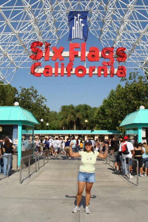 Time for a long winded and long overdue review. If you do not like to read and just want to look at pics go here: http://www.maj.com/cgi-bin/gallery.cgi?f=119418 There is TWO pages of pictures there – click the ‘NEXT’ on the lower right part of the page to see the second page. Ok, so this was my first visit to Six Flags Magic Mountain since 1993 so I was not sure what to expect from the park. I had heard all the horror stories about the park being overrun by gang members and the extreme disarray the park had fallen into over the years. Despite all these tales I was really looking forward to having lots of fun at SFMM! The visit started out great even before we started on our quest – I was lucky enough to win two adult passes on ebay for $21, so that saved us a good amount of cash even with the BOGO Coke deal that I was planning on using. We left my Mother’s house in Culver City a bit after 8am and got to the parking lot gates a few minutes before they opened them at 9am. This gave me a good chance to get my first peek at X and a few of the other rides – the butterflies in my stomach were jumping! According to the news the temperature got up to 109 degrees the day we were there and it felt like it was well over 120! We spent over $30 on water and made good use of the water rides during the day. IT WAS HOT!! We decided to get the VIP Thrill Pass (all day Flash Pass) since we saved so much money on the tickets and we wanted to ride as many rides as possible. This turned out to be a GREAT buy. Now I take it they do not sell many of these things since the guy at the ticket booth had NO idea how to ring it up and had to get help from a co-worker and each time we purchased some merchandise (a total of 4 different times) each cashier had to ask how to apply our 25% discount. We did not see any other of these passes all day and some of the ride operators had to read the passes to figure out what they were. We went on every ride that offered the flash pass option with the exception of Roaring Rapids, and the ONLY ride that had people using the Flash Pass that we saw was Tatsu! We felt kinda silly using the pass on some rides like Psyclone – since there was no wait for that ride and the ride operator seemed shocked somebody actually used a pass on this ride. Over the course of the day the VIP pass worked out great, I would not hesitate to get it again and would recommend it to anybody that does not visit the park often. I think the best part of the VIP pass was the free meal at the Mooseburger Lounge! I say this not because of the food (I would rate it a 4/10 on the food quality) but because sitting down and being able to take our time in an air-conditioned restaurant with refillable drinks was perfect. It was 109 when we visited the park and the Mooseburger was just what we needed. Had it not been for our free meal there we would have got some even-more-crappy meal at one of the random hole in the wall food stands and eaten outside in the HOT and sticky shade (and would have gotten NO free refills on the drinks!). Even if you do not get the VIP pass I would recommend eating at the Mooseburger for the benefits I mentioned. Ok, so the rides – we went on a total of 19 *different* rides. A very full day! I am not going to alk about each one of the 19 different rides we went on because this is long enough already lol. What I will do is give highlights…. Goliath was down all day we were there, or at least each time we checked. We also missed out on Superman, but we did go on all the other “big” rides. We skipped all the carnival type rides and kiddie rides. The first thing we did after sitting thru one of the worst pre-park-opening celebrations I have ever seen was go to ride X. It was kinda tricky to find it since the signs were not the best and we had no idea where we were going other than “over there”. The wait for X was only a few minutes – we walked up directly to the loading area. I have to say X was the BEST ride we went on all day! I had no idea where my body was going or what it was doing! But it really did knock me around and I really felt it for awhile after the ride. From X we walked over to Tatsu riding Viper and Revolution (thanks to the VIP Thrill pass) on the way over. Tatsu was a great ride! The first time it freaked me out since I have never ridden a ride in the doggie style position! And looking down that HUGE drop going up the ramp was a feeling that I can not quite describe. Thanks to the VIP Pass we rode Tatsu 3 times in less than 30 minutes. We came back to Tatsu later on in the day and rode it 3 more times but the wait was a bit longer thanks to the late-comers holding Flash Passes. But riding Tatsu 6 times in one day was a blast and I wish I had ridden it more! Later on in the day we went on Ninja we actually got stuck on the ride! When the train started to go up the ramp at the end it just stopped and we were stuck there for about 20 minutes. We were NEVER given a time frame of how long we were going to be stuck and we were not evacuated from the ride (we were stuck next to the stairs). A ride operator did stand on the stairs to watch over us while we were stuck. When they did get the ride un-stuck they never said anything like “we are sorry” or anything like that, the ride operators just talked amongst themselves as we exited the area. After getting stuck on Ninja we decided to go ride Superman and began to walk over towards it. On the way to the ride we noticed we did not hear it running, something we could hear when we were much further away from it… yes Superman broke down! When we started to walk away from Superman I noticed what I think was some sort of Supervisor, she was wearing a light blue button down shirt and I recognized her from when we exited Ninja. I approached her and said Hello and explained to her that we were on Ninja when it broke down and how we wanted to go on Superman but it was broke. I asked her if there was some sort 