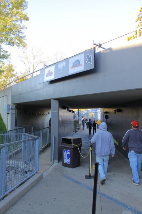 If you read the descriptions, then I must tell you that there is a perfectly logical reason for why I didn't stay to see the actors be "released" at 7:00p.m.: I was exhausted! Simple enough! Besides, I was at the park since it opened at 11:00 a.m. I was with a sizable crowd waiting for a man to drop the rope. First the rides tested, they then stopped as the Pledge of Allegiance played on speakers. Immediately after they ended the pledge, everyone made their way to a ride. I was one of the first and only people who got to ride Drop Tower that day. Winds were very strong at the top and so that's why they never re-opened it. By now, I'm randomly choosing a ride. First time on Flight of Fear. It's now my favorite coaster in KI (other than Diamondback). Also my first time on a Vekoma Flying Dutchman. Pretty cool coaster, but takes quite a while to load. Now making my way to... A Tree! Okay, Vortex! Almost every ride here is my first time on it since that last time I was here, I wasn't tall enough to ride anything. Vortex was amazing. A few pumps here and there, but still an amazing coaster. Windseeker never ran all day as well because of the high winds. Looked interesting, but I wasn't eager to try it out. Yep! Pretty interesting combination. Trick-or-Treating with dinosaurs. Ohai! I passed on riding this ride because of the length of the line. The one coaster KI fans are raving about! I'm quite disappointed with this ride. With the cool looking entrance and heavy theming in the queue, I expected this to be an amazing ride/show mixture. I don't want to give it away to those who haven't been on it, but I can tell them that it's not worth riding if the line stretches past this entrance. (Side Note for the photo before this photo: Either I had my lens on manual focus, or I need to have it checked out. Don't know why it's blurry.) I'm going to split this TR into sections. Up next: Stuck on Delirium, riding Racer, and waiting centuries to ride Diamondback!