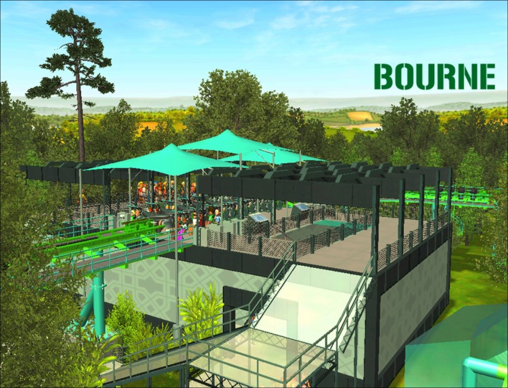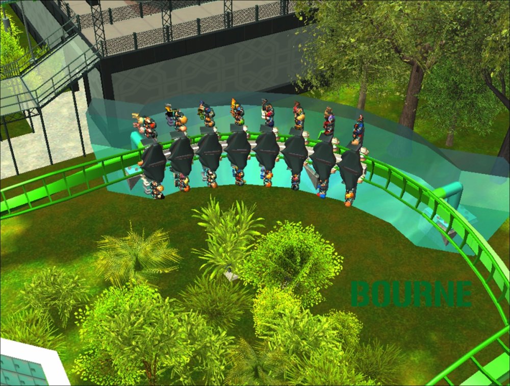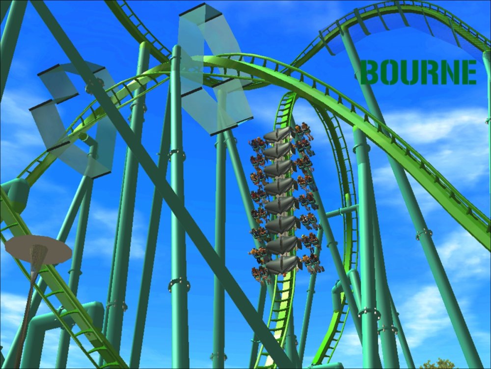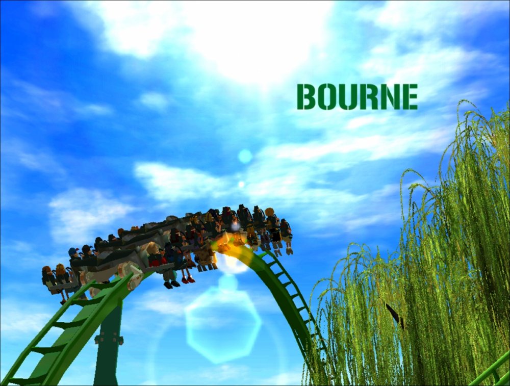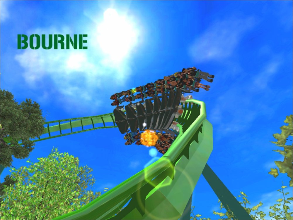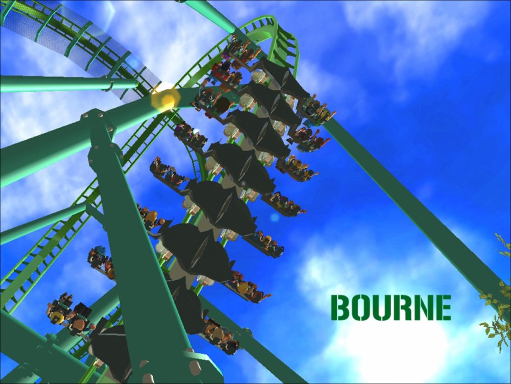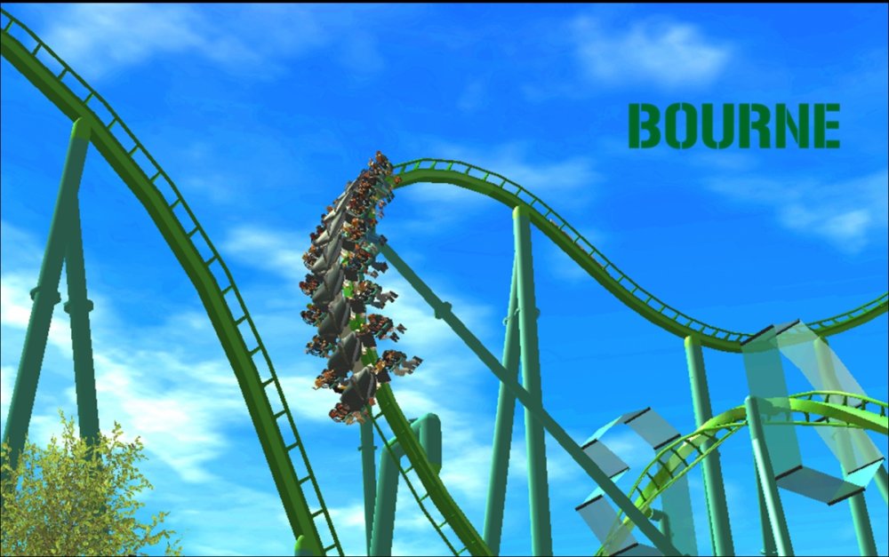 Bourne Break the Boundary Within life, there are limitations in almost everything we do. There are a set number of gallons of gas you can put into your car, a limited number of items you can have to go through the express line at a grocery store, and even a maximum on how long your body can go without food or water. But have you ever thought about a place where boundaries and limitations don't exist? Meet Bourne An inventive and experimental B&M Wing Coaster that breaks the boundaries of what modern roller coasters are accepted to be. Bourne, an archaic term meaning a boundary, limit, destination, or goal, was designed to show how limitations within our world affect our everyday lives. But, there is a place where these boundaries and obstacles can be overcome; a place where endless opportunity and inventiveness is available. That is the environment in which Bourne resides. Featuring the world's first inverted Pretzel Loop, a vertical drop, a Flying Snake Dive, keyhole elements, and another world's first, an inverted corkscrew, Bourne takes realistic roller coaster layouts and breaks the boundary that was once accepted. Fly through multiple head and foot choppers, soar through keyholes, and kick the glass boundaries that occur throughout the whole experience of Bourne to become a part of the ideal environment. When initially designed, Bourne seemed almost too futuristic, too intense, too outgoing, too extreme, and too exciting. Yet when faced with the future that griffonj2022 has in front of him, this is the long-awaited "key" that unlocks the doors to PHASE III, a new project from griffonj coming JUNE 21, 2013. Bourne also completes the DNA Phase, a year-long set of attractions that delved into the DNA of griffonj and produced nine designs over the course of July 2012 to June 2013. Bourne offers the closing of one book and the opening of another, a transitional design that breaks the boundaries of what is acceptable in the RCT3 realm. So there's only one question remaining: Are you willing to Break the Boundary? -