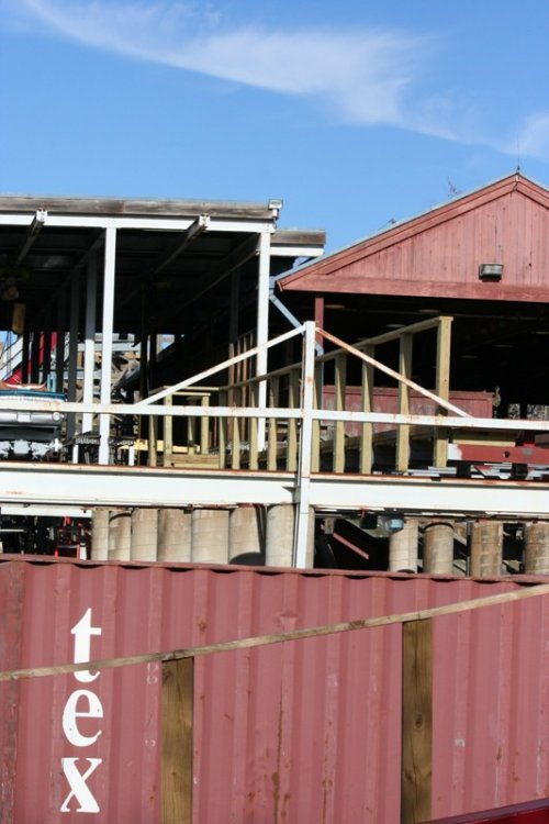 Just got back from the park, still alot of work to complete on the giant. They are aligning track, installing new air gates, and look to have two tracks in the maintenance bay to complete as well as the loading of the other two trains. 9 weeks to go until opening weekend for the park, at this point I would think they would want to be testing by the end of Jan or first of Feb to be able to open with the park, guess we'll see! In the meantime, here are some additional pictures for you to enjoy! **EDIT** If you would like to use my pictures on another site, feel free, however, please give credit to TPR or Myself, heck if you PM me, I might even be willing to send you the full sized images. Many Thanks! working on the top lift chain mechanism area work is still on going on the lift classic shot backside of one of the OMFG turns and the front side lets see, how about some track aligning? notice the bolts missing around to the lift area the safety railings have been installed on the transfer track, but no sign of track rails installed in bays 1 or 3 sexy new air gates going in backside shot and finally