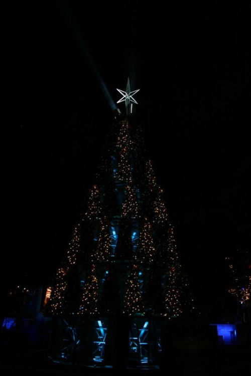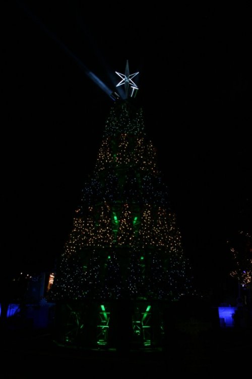 13. Ok folks, here's Part II, all at nighttime with the sparkling lights and whatnot walking up from Titan towards Spain I found some new friends who wanted their picture taken. Told them about the site and club and to take a look to see their pic the former Mrs. Fields Store. this area is by Yosemite Sams Gold River and is choreographed to music by the trans siberian orchestra speaking of Yosemite Sams, have you been in it? It has some real interesting adult humor injected into it, so if you haven't ever rode it, do it, and be cool more yummy food! So why is this my favorite S&S, hmmm, tallest, combo, or my first. Probably my first, and as many of us know, we always have a special place for our first so in honor if being my first, here is another shot midway going towards the main gate and then on to spain weeeeeee this area is closed, so don't go back there. Actually, they open up the flying thing a few days, but not no coasters and not today i couldn't resist santa's land where you can go in and talk to santa I suppose and getting closer to the end of my journey I have to give Judge Roy some love, I hardly ever do in a PTR, but today, all lit up, I decided to give him some Justice and a little more love, but now, time to make our way back to the entrance, the night's almost finsihed up front we find the giant christmas tree dancing to music so we say goodnite to SFOT. Thanks for a great evening!