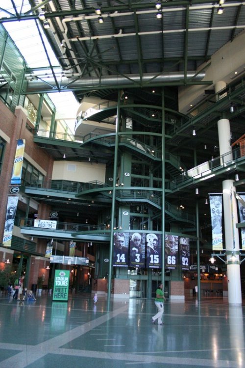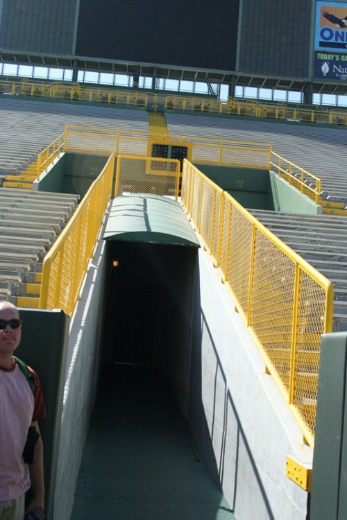 4. With the NFL season well underway and the NBA season not even on lifesupport, I thought, this is the perfect time to share with everyone a behind the scenes tour of Lambeau Field Now those who read my reports from time to time know that normally I, well, travel alone. But not this time! JoJo1979 caught wind of my desire to travel to Green Bay to visit Bay Beach (coming soon!) and said hey, I want to come too! So on the morning of Sept 10 we met at the stadium, obtained tour tickets, and headed for the atrium and the historic home of the Green Bay Packers! Well, here we are folks, at the stadium of the only publicly owned team in the NFL. The fith sale of their stock was recently approved, so you too can be a team owner for around $200 a share. Just beware that the stock is, well, worthless. (Not being mean here, financially it's bascially a donation, read more on their website.) This is where the fortunate get to party, or those with tickets. When you walk in you hear this hollywood movie soundscape in the tone of "AHHHHHHHHHHHHHHHHH" (not really, but you can pretend to hear it if you want to) Those who do not have money, enter here. The famous Atrium. Without it and all of the improvements that came with it, well, the team might just be a memory. The atrium and associated meeting space has helped the team stay in the black. The Hall of Fame is this way, for a little extra on the ticket price you can view all the team memories and, yes, even the Superbowl Trophy! Since we have a little time to kill before the tour, let's have a look around. The gift shop had everything. Pens, pencils, GBP Sharpies, hoodies, and limited edition Superbowl merchandise. They even had this self help book! Now we play a little game called "Things that Sound Dirty but Really Aren't" First off, Goin' Deep That would be a pizza outlet. Not, well, you know. Next we found the "Meat Packing" Co. Combine the two and you get "Pack it Deep" but I digress. And finally the dirtiest, nastiest, most disgusting, and final entry of our little game, "Boomerang" Cafe. It's keeps you coming back, but not me. I'm a one and done on boomerangs. So it was time for our tour, first stop, the Packer's personal suite. I was actually surprised it wasn't center field, but, the view was still very nice. Want to rent it out when its not being used? Well, you can for about 40k. Includes admission for 40 of your friends, VIP parking, and food. Next we went underground. Cool stuff resides in here. The coaching staff parks in this area. I was told by the alternate tour guide that they know if the team is going to practice that day by whether or not the coaches cars are there. They were not. Important stuff happens in there. As Seen on TV! Get pumped, it's time to run out on to the field. They simulated game day music and crowds as you walked down the tunnel. Well, I guess we won't be storming the field afterall The field is made up of a blend of real grass and synthetic grass. One of these things does not look like the other, one of these things is not the same. The synthetic grass was sewn into the field with a huge sewing machine. True Story! Most of the people who clean up after game day are school kids. While the team does pay for their services, the money usually goes to their school club, etc. If you are a loser, you take this tunnel. From ground level. From the stands. Noted! 6600 new seats will go in this area, with new lights and HD scoreboard. Some of the money you donate to them by purchsing stock will go to this cause. Well, I hate to say it, but that's pretty much the end of the tour. After we left the field, we went onto the concourse where tens of thousands of beer cans, soda cans, and bottles were bagged up and ready to be sent to the recycler and were dropped back off at the Atrium. It was a neat experience. Plan about 90 minutes to two hours depending on how much time you spend in the gift shop and if you go to the hall of fame or not. So for you Packer Backers, here's hoping for a perfect season!