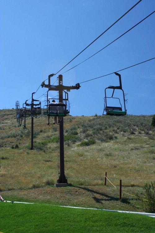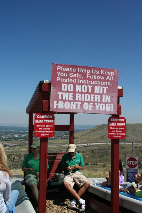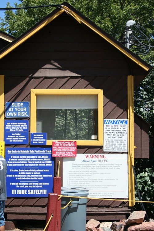 9. Next up was a bonus in the form of an Alpine Slide. I've never been on one of these before, and I must say, I'm hooked. They have two tracks, a slow and fast. I slid down the slow one first and then hauled down the fast course. Here are some pictures and video. And no, I didn't count it as a credit Looks like this is the direction I should head in. Looks high. Noted! My brain hurts from all these notes. Well, on to the chair. Up I go! And we're sliding And we're sliding some more. This was actually really really fun I suggest leaving a lot of room between you and the person in front of you. Bascially they tell you when you can slide and to leave when ready Because if you don't leave enough room, the people in front get scared, slow down, and you can't go balls out. geeze, Noted Again! And the starting gates! And Noted! That's it for adventure #2! Be sure to check out the video!