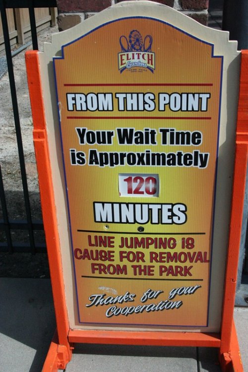 14. Elitch: It's not to see. Well, I took a trip to the park on August 21st to see if it's not to see. The coaster lineup on paper doesn't look impressive, but I went in keeping an open mind, and, well, head banging was the story of day. Having not been to the park before I can't compare it pre-Herschend, but I can say I found the park to be clean with the feeling of fresh. From what I understand, it hasn't had a good track record over the last few years, but with the infrastructure improvements that it appears that they have made, they have an excellent foundation for adding attractions in the near future. One thing of note, looking on the back of my parking ticket, I found PARC Management properly displayed in the disclaimer, guess they are running out the stock which was obviously over bought; now we know why they are no longer managing. While I skipped the fireworks, I did manage to check out their Cirque show, more on that later. For now, sit back, grab a beer (or root beer) some nuts, and enjoy what's not to "see"! Welcome to Elitch! Come on in, we will see what's not to see. I won't be seeing anything form the tower, the wind shut it down. Inside the entrance gates, nothing to see here, moving on. Looking down mainstreet I didn't see many people around. I did see that it looked inviting. The wheel is in the perfect place, really. It allows you to see all of the park and had some nice landscaping around it. I see the spider's go go parts, which meant it would be difficult for it to operate today. I see a couple of nut jobs. Ahh, my next stop is over here I see. I really like these rides, as you can see it makes for a great photo op. I see headaches ahead. I can't see waiting this long for a headache. I see people about to get whiplash. I see headbanging! I see people in pain! I see people wishing they had not gotten on the ride and see people on a different ride enjoying themselves. I see my next stop. The boomerang is not to see. But being a whore, I went to see how it was running, shockingly, it was not all that good. This is the really the main ride I came to see. I did not enjoy it whatsoever. Not only is it slightly boring, it hurt my man toy. And that is something I did not want to see happen. Next it was time to get over my fear of this type of drop tower (note: have not ridden one of these since the KK accident) and see if my nerves would hold. Well I did it, and I have to say, the view was very nice, you could see for miles. Oh, and I'm over my fear of the Intamin cable. Of note, only two cars were running, the third was missing some needed components, like the shocks. As you can see, the park looks really nice. They just need better coasters... because this was not what I wanted to see, another headbanger. The 20 story walk up the stairs to the top of thing left me out of breath, but, I was able to see my fourth and final legal credit of my visit. You see, the kiddie credit was off limits, even with a kid, odd, being as Dollywood and Silver Dollar City let adults ride theirs alone. So, lets go in and have a looksee at their best coaster. This person made sure to point out the sign for me to see, so I was sure to make note of it and not break the rules. Want to see some PTC porn? Well, ok. It really was a decent ride, not intense, but it was good. I didn't see any bruising after riding, so it goes in the top 30 list. See, it was beautiful today out, not too hot, not too cold. See, look at those people, they were happy to be on the best coaster in the park. Dan would not like to see this amount of wetness, not acceptable. It was unexpected as a matter of fact. Walking around the back of the park I found a classic arcade and a few games. Do you see the banana? If you do, mine's bigger. You know, I had high hopes for this, but it just didn't go fast enough for me. See, faster is better. The staff at the park were friendly, the Thunderbolt op could see I had my camera with me and offered to hold it at the booth as I walked in. We'll see about that. They didn't. Fancy. Like Piers. Too bad he wasn't here to see this. To quote QueerRudie, "Nah....too easy" but, why not. Doubt you will see any ACER's up there. This would be a sight to see. Wonder what it does. Hell YES! Must. See. Being a Cirque fan, I decided to go and see this show titled Bosque. I went in with low expectations, and left quite surprised. Inside, we find the stage were you can see the setup for the first act. Three acts in all with the traditional clown walking around in the crowd making fun of people. The three acts included two guys where one laid on his back with his legs straight up in the air with the other guy balancing on top getting flipped around. A lady twirling from ceiling and a chair stacker. All were very talented and it lasted around 40 minutes. Props to Herschend, I hope many of you were able to see it this year. This was one of my favorite photos of the trip. With the wheel all lit up in it's bright LED's and the flag flapping in the wind, it was really a neat sight to see. Well, hope you enjoyed looking at what was not to see. I have high hopes for this park which needs a large signature attraction. With Herschend seemingly getting back to basics, lets hope something big is on the horizon.