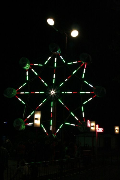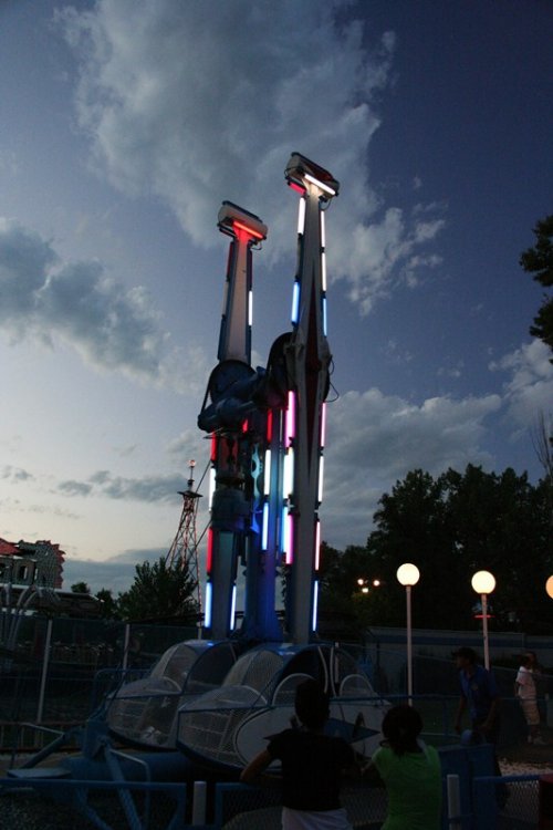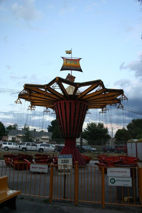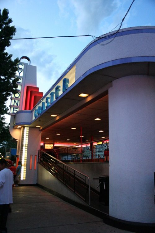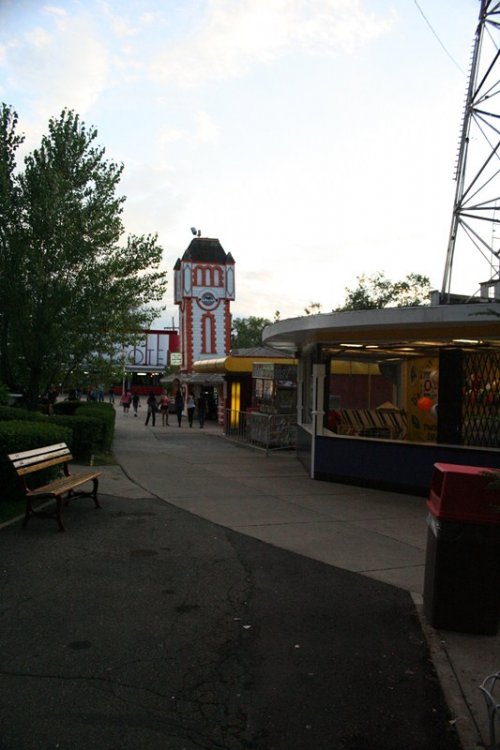 11. On August 20, 2011 I made my way to Denver, Colorado where, amongst other parks, I visited Lakeside Amusement Park located near downtown Denver and close by to the Jack and Grill restaurant featured on Man Vs. Food (which was really good btw) Lakeside is an Art Deco park that brings you back in time. When I first drive up to the park and had to park in a sandy parking lot I was thinking what in the world did I get myself into. However, I was literally taken back in time and instantly fell in love with the park. As you will see each of the rides, with the exception of the zoom, features an art deco entrance or ride sign that lights up at night with colors of the period. The rides also looked very nice at night with most of the lights actually working, something you sometimes don't see at a major park. Unfortunately I would be denied two credits. The Dragon I understand has been down for sometime and I was denied a ride on the kiddie coaster which I thought strange as I've ridden plenty of those in the past. However no amount of smooth talking would get me on the ride. But despite that small setback in my coaster counting, I took time to just enjoy the atmosphere. Ride prices were cheap when bought by the ride or you get get a pay one price wristband on the weekend for $19.95. When I figured up the number of rides I went on and their ticket pricing, I came out about even and rode a lot. While I can see how some might consider the park to be sketchy, I rather enjoyed it and would certainly return next time I'm in Denver. hmmm, where am I, looks like a casino down there Hey look it's a coaster! I MUST be in the right place! Sure enough, I'm at Lakeside today! Rock on, party hard dude! I walked through the tower after paying my $2.50 entry fee and stepped back in time. I was instantly in love. The park was clean and full of life. In case you didn't know, the coaster out front is the Cyclone. I love the station! The signage is art deco which is a matching theme throughout the park. I wonder what these signs look like all lit up at night. And even a bigger question, do they work? Can't have a spide sign without a spider! The signs were built to also be used as individual ticket booths at one point in time. This is just awesome! It was running full tilt! The scrambler was running balls out as well! Through the bush shot Funny, I have the same rules... Speaking of Wild Chipmunk, let's go hop on the Chip. Nerd Shot! The preceeding nerd shot was brought to you by, the brakeman. Yep, that's right, not many of these exist anymore. OMFG! It's gonna fly off the track! And a classic overview "Hey, quit grinding on me" "Sorry hun, they said we had to sit close together" "It's okay babe, I can't feel it anyway" Double coaster train/car shot! The ol' girl still stands. Outside of the Cyclone, this was simply the best ride station at the park, heck, one of the top ones in the country IMO. Here we are at the INN Where you can find food at reasonable prices. As far as quality is concerned, I can't speak to that. I was still full from my 7lb burrito Next it was time to slay a dragon, so I took a stroll along the backside of the park. Closed. I did notice that they have their Cedar Fair trash can ride closed signal down pat. If the inlet is facing you, the ride is closed. If the inlet is facing left or right, the ride is open. Oh well, let's take a stroll and see what else they have, like this classic ferris wheel, complete with yup, another art deco sign. Snappy Snap Snap Snap Snap Snap We will we will whip you. This was mighty tame compared to others I've been on. A very brief overview of kiddieland and the denied credit Bumpity Bump Bump Boats, with yet another cool looking sign! ACER's be warned. So two rides down isn't so bad. Darkness was starting to fall and the lights were coming on. This here Matterhorn played no music and really didn't have the fire power I'd expect. Oh, and watch out for the pigeons "Worlds Most Exciting Ride" The "Zoom" was the only ride without an Art Deco Sign. I was told it's 3 years old and cost them $3million to install. ouch! "I think I just peed myself" Ahhh, I'm in ahhh, see, ahhhh Operator controlled, oh yeah, make him mad, you hang upside down for a while. Starting to get really dark at this point with storms brewing to the South, so it was time to see the park all lit up at night. Hello Cyclone, not only do you have a nice station, but in the dark, the tunnel leading to the lift hill is quite exciting! I love this shot. The ride itself doesn't beat you too bad and there are no seat dividers, so if you get to ride by yourself like me, you get to slide all over the bench! These were on the ironwork railings, I thought they were cool. Dude looks like an ACEr, certainly not like a lady. They didn't even check your belts, you got in, sat down, connected the clip, they asked if you were buckled up, and sent the train. Overall I liked the ride, not too rough and the layout was nice with a 30+ degree bank going into the turnaround. A top 20 woodie for me. The line was getting long for the Cyclone, so off for a night ride on the Spider. And the sign works! The spider flashes green, but no good pics of that I just liked the fact the most all of the lights, except for the entry tower, worked on the rides. I love a good park with working lights, it just gives it a special feel that you don't get in the daytime. Flying High, or just High, one or the other Rock my world little country girl, oh, sorry, singing again, the Rock-O-Planes needs some lube, lost of squeeling and not a lot of action. Even the whip has some cool art deco to it. Time for an icee Off to skoot a boot These bumped and kicked some ass. Life is all fun and games until... ...its time to go. Thanks Lakeside, I enjoyed my stay!