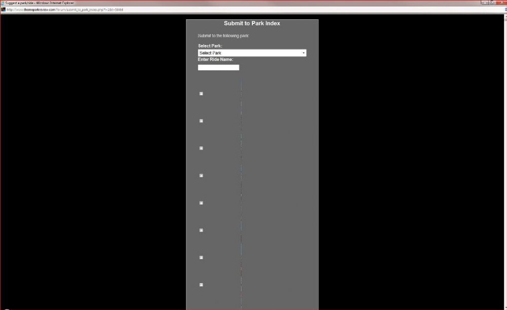 22. Larry/Robb: I know that the submit to park index button in the forum is new and probably not the way you want it just yet, but, you know me I got all click happy! I'm attaching a screen shot of what it's doing to me in IE9, it works fine in Opera. I noticed when the pop up box comes up that it displays every picture I have posted to my trip thread and not just what was in the post where I clicked the button. Not sure if this is by design or work in progress. What I actually thought it would do was give the option to send the link of that post to the park index, but the picture option was a pleasant surprise and looks like it will be nice and easy to use! Like I said, I know it's new so don't beat me too bad