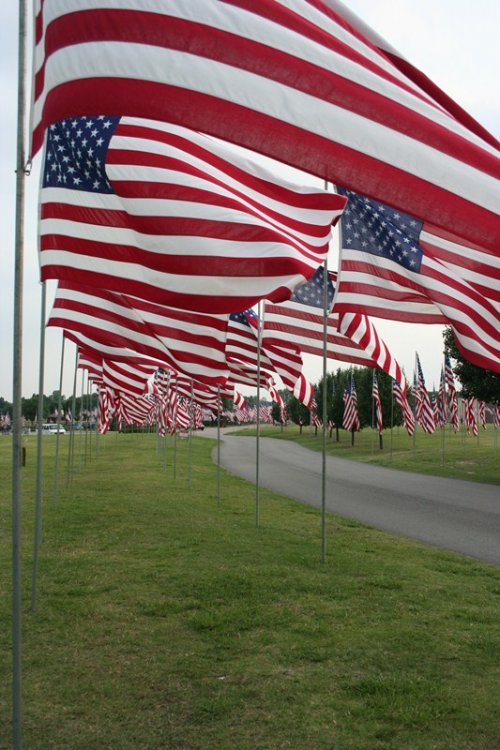 This Memorial Day weekend I thought I would share with you a local tradition that has received not only national recognition, but has also attracted people from different countries. Known as the Avenue of the Flags, this Memorial Day tradition displays the flags of our fallen Military men and women and is located at Floral Haven in Tulsa, Ok. Started in 1972 with a single flag donated by a widow who had no means of displaying her husband's flag, the annual flying of the flags has grown to 2,969 flags. The flags are stored each year in waterproof, fireproof containers and are raised and lowered each year by local boy scouts. So this Memorial Day, take a moment to remember those who have defended our country and our freedoms. Welcome to the only display of flags of fallen war veterans in the country. This is my grandfather's flag, Louis P. Carter, who served in Korea. His brother and brother-in-law were both POW's of the same. Each flags has it's own dog tag. This is a special area for war veterans and the spouses. NOTED! Thanks for looking and while you are out and about, if you happen to come upon the Blue Star Mothers this weekend, donate a few bucks, all money goes towards sending care packages to our deployed troops. You would be amazed at what a small care package does for troop morale.