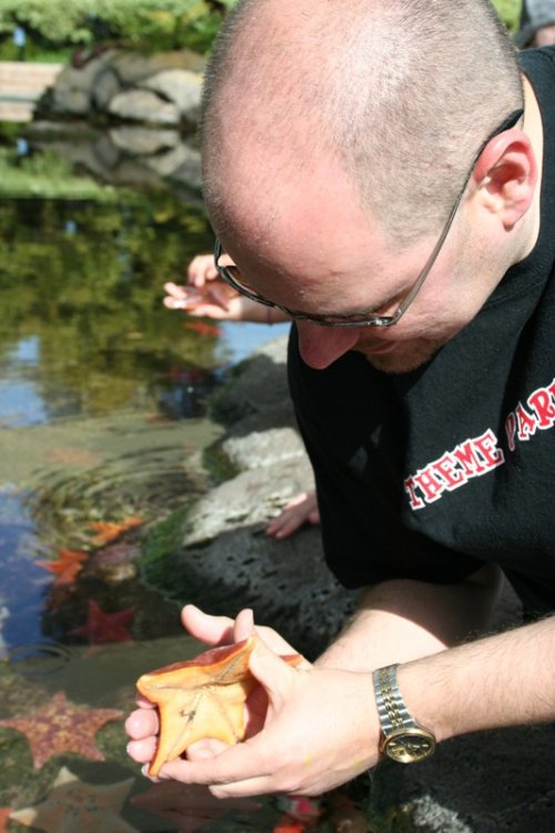 Another part of my preWCB tour included a visit to Sea World in San Diego. I was able to assist PAL in getting rid of a free park entry ticket that he had (Thanks again dude!!!!!) to obtain not only a credit on Journey to Atlantis, but to take in my last American Sea World credit. Lot's of construction going on on the new Turtle attraction, some rehab on one of Shamu's pools, and the mystery area blocked off. So, here we go. YAY!!! Sea World!!!!! So, the big blue wall surrounding a massive area of the park, wonder what's going on in there, hmmmmmm FLIPPER!!!! Some rehab work going on in the observation/dine with Shamu pool. On Orca chillin FEED US!!! It's ok little star fish, I'll take care of you. Some turtles hanging out The Easter Bunny Wonder what's going on in this, the new Tortise home ahhh, dirt pushing. I love watching these guys, always the showmen, or show offs, beggers, hams, etc. playing dead ahhhh that feels gooood maintaing peace and order and my time here wouldn't be complete with out a classic shot of JTA Acceptable amount of wetness in the rear, not so much in the front. This was a great ride, better ride wise than Orlando, but is lacking a clear storyline. Orlando has a nice story line, but short coaster portion. It was my first time on an elevator boat lift. Bye Sea World, thanks and see you next year for Manta! -