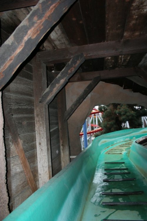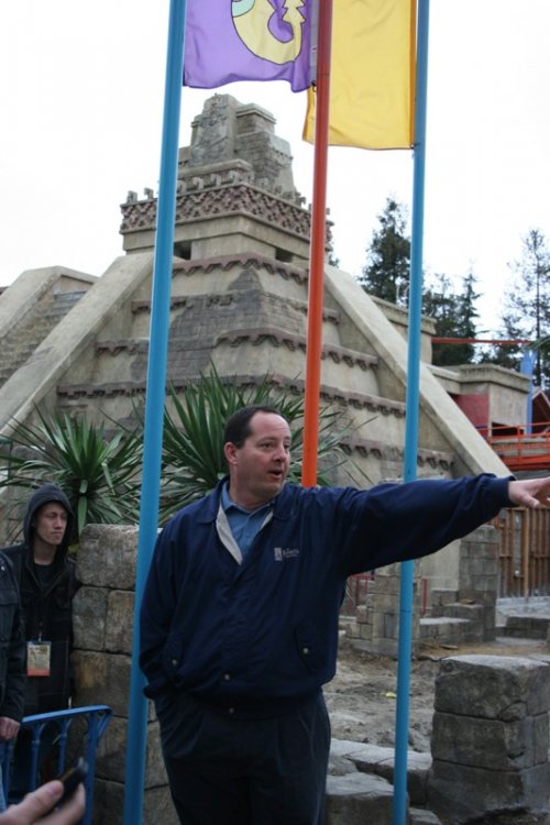 Ok, time for Part II - Log Ride tour and whatever else I have time to add before lunch ends, oh wait, i'm always on lunch, so, make that, whatever else I feel like adding before I lose concentration. Yay for log ride tour!! Log Ride nerds lined up ready to snap away Log in rehab So, I know what you are thinking, there are only 4 logs here. WRONG!! this contraption goes down 8 more rows into the ground, how cool is that? Storage at it's finest. the logs are hoisted around by this thing logs chilling with no wa wa. We were told they still have 30 of the 32 original logs and were special builds, longer than the other guys. We were also told the reason they are missing two is one due to old age, and the other they sent off to try and have duplicates made, but the company they sent it to cut it up and failed. I can see the drool from here. so here we go down a hallway Random Christmas crap So here we are standing under, well almost under, one of the two lifts. This is an official ride manufacturer's fix for PVC pipe A Good Sign! spare parts SIT DOWN!!! But we're special, so we got to walk the trough you can only get this shot while walking the trough, on a backstage tour, at WCB 2011, why weren't you here? same with this shot and this one Nerds! walking down the trough, this is where we depart and go deep into the mountain and I mean deep, so everyone knows that SFOT had the first log flume, but do you know why? Well, it's becuase Knott's didn't want to risk putting in the first one. They went to Arrow, told them what they wanted to do and Arrow sold one to SFOT, after it was proven, they built the first themed flume, and second ever. rebar left sticking out after the shot crete. Apparently there are rooms in here that go to nowhere and stairs that go to nowhere NOTED! big pumps make water go splash splash still no faults These massive pumps go something like 13 feet below the surface. They recently had a need to replace one which required cutting a hole in the mountain and using a crane. Annual maintance also requires pulling them out and we were told they barely fit in the area we were standing in to service them. And finally, lots and lots of water goes through the pipes to give us that ride we all know and love. Thanks Knott's for the kick a$$ tour! For the next tour, all the geeks lined up at the Windseeker site for a tour of their dirt. The fountain is still intact NOTED! the big dirt hole why do people like taking pictues of dirt? So here's the scoop in case you didn't know. Due to the earthquake in Japan, some funky rules kick into place regarding construction of this magnitude and some earth samplings must be done. Thus, they are in a holding pattern, but hope to start hauling in their 60 trucks of concrete from 2 plants within the next few weeks. The famous B&M Support. Interesting note. The Windseeker will not rotate until it get's high up in the air so as not to get within a specific distanct from Silver Bullet when the chairs fly outwards. They had to remove the trees to make room for the 500 ton crane. more dirt "Over here could be a whore house and/or a brewery, but we are not zoned for that or a refinery" Both Robb and I were highly disappointed. So yeah, that's a tour of the dirt. After the rains Sunday, I returned on Monday and from Silver B the hole looked like a swimming pool. Look for it to open sometime after Memorial Day. So that's if for this part, the last part will include some rather embarrasing moments from lunch. -