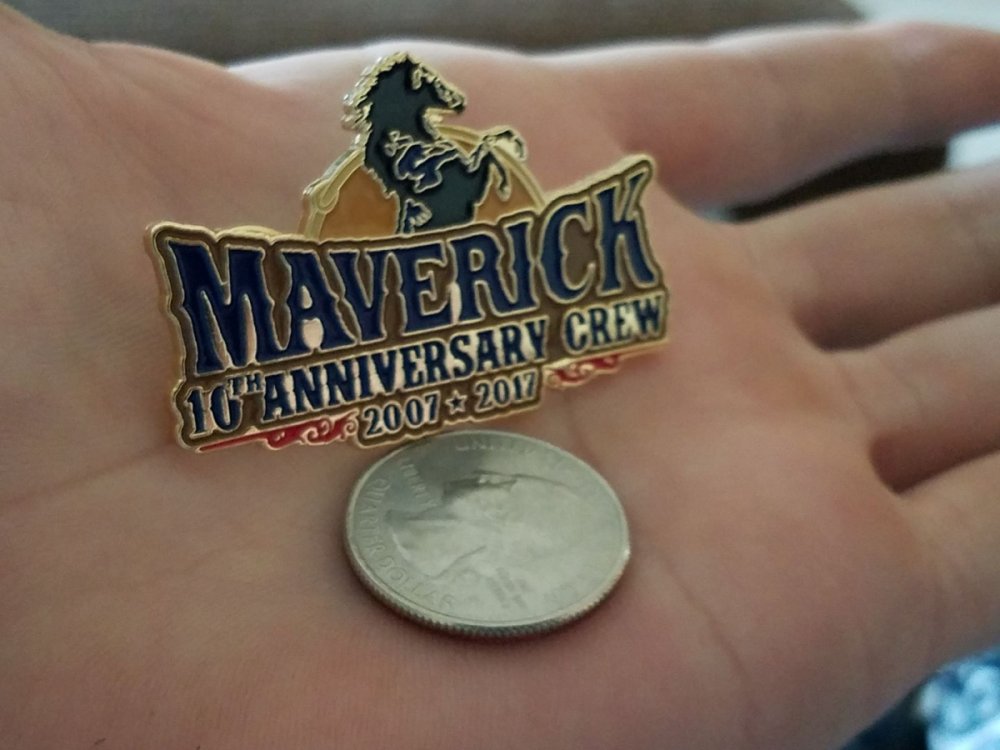 Okay here is my favorite thing I have been able to collaborate with. The ride sup I was working with wanted to do something other than buttons so the decided he was going to do a really small run of lapel pins ( they are not for sale ). I did the design work (obviously I didn't do the logo) The proof of digital representation of the final product Here is the initial design The completed product Just to show size