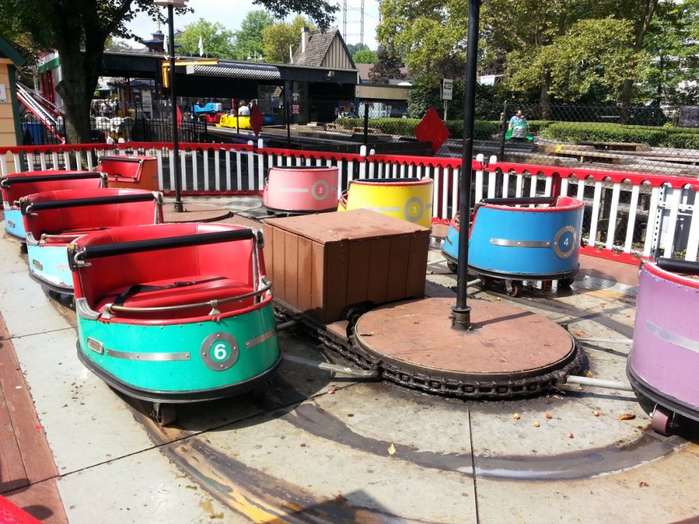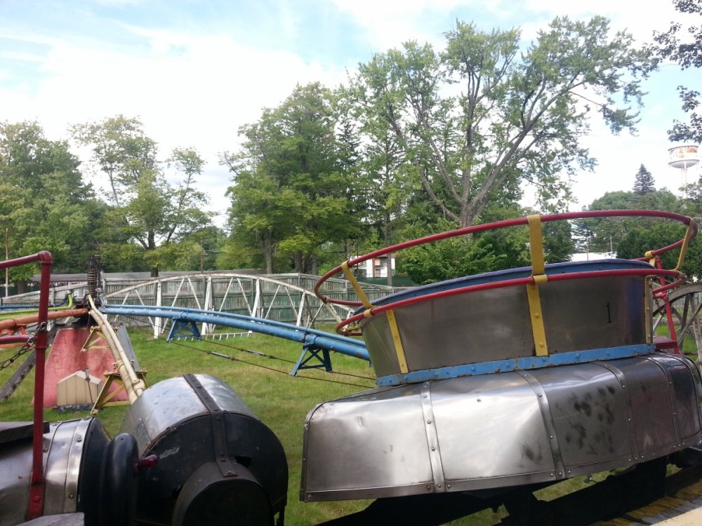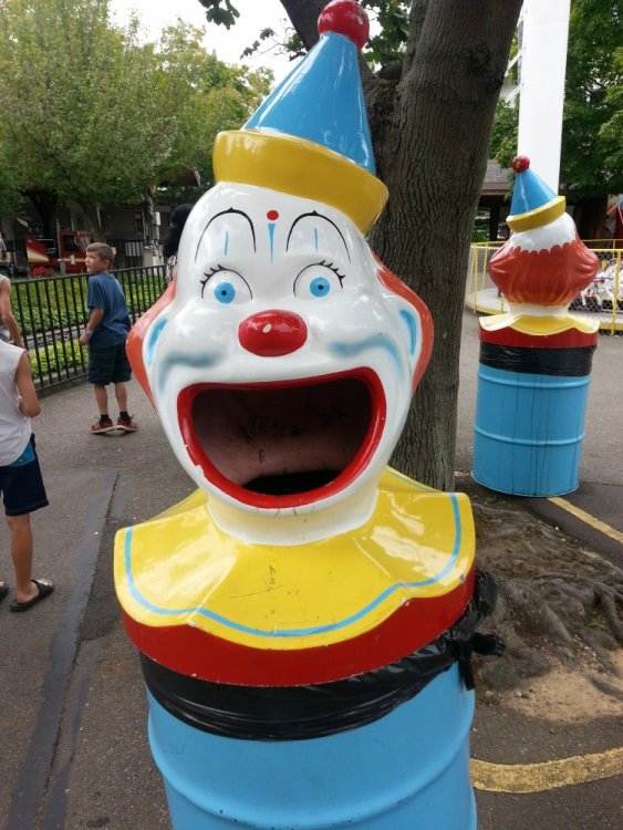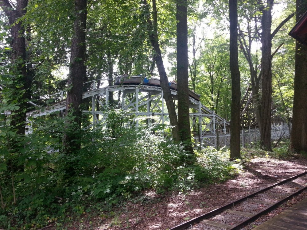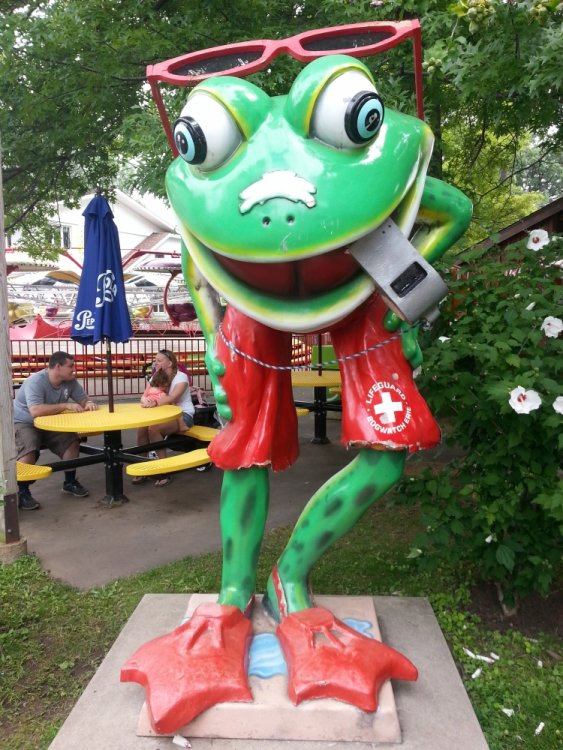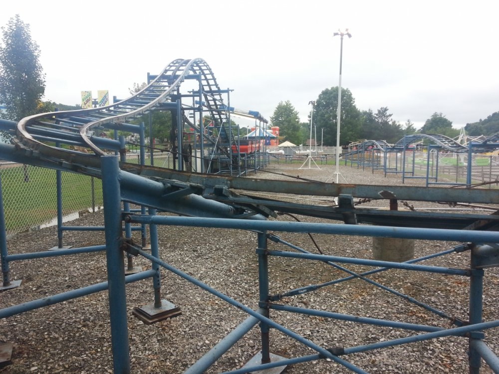 Our final parks of the weekend were Waldameer and Conneaut Lake. I was a little anxious about timing, since neither park opened until noon, and I had to get back to the airport in the early evening. Stacy was staying in PA to visit family and hit up Hersheypark, and hopefully coaster #200! Obvi the first stop of the day was Tim Horton's. It was August, but they already had pumpkin donuts! Mmm, Timbits! I wish we had these in the South. Don't take THo's for granted, Great Lakes people! Made it to Waldameer a bit before opening. It was already starting to get crowded, even before opening. Creepy! Hmm, Ravine Flyer has a sign that it doesn't open until an hour after park opening. AHHH! More clowns! What is it with this state? Well let's go check if the kiddie coaster is open. Nope! Comet was the only credit open, 45 minutes after "park opening." It was a fun little ride. Lifeguard frog has an attitude! The dark ride was fun. Steel Dragon still not open to the public... Next we went back to the kiddie coaster, which was finally open. I loved the setting over water. Yay, credit whore photo! Steel Dragon finally opened too. Standard spinner. This was a fun little walk-through. Parting shot of the Comet as we headed for the exit. Waldameer is a weird park. It has an excellent woodie and some unique rides, but the park operations were awful. It's a pretty small park, but I have a feeling they'll keep expanding. Our final park of the weekend - Conneaut Lake. This was pretty much the main reason for the trip, since the park might be closing. I'd heard a lot of bad things about the park and good things about Blue Streak, so I was intrigued. Looks good so far. Look, lawn maintenance! Hmm, the entrance is a bit deserted. It was empty, you just walk through and buy your tickets at the back of the park. First missing ride. Not too busy yet. A little run down but not bad. Look, a coaster! Through the trees! Blue Streak beckons, but first we have to go buy tickets. Another partially missing ride. After we bought our $5 all-you-can-ride wrist bands (what a great deal!), Connie told us we could ride Blue Streak. View from the Blue Streak station. It wasn't crowded, but there was a healthy amount of people. I'd heard a lot of stories of this park being completely empty all of the time, but I'd say there were well over a hundred people here. The Blue Streak station is a little run down. Pay no attention to the tarp. If this is what the running train looks like, what does the tarp-covered train look like? Blue Streak was fun. Great airtime, but a bit rough with a few jolts. Still a great ride and it would be a shame to lose it. Next we went to Devil's Den. What a unique, fun ride! There are no brakes on the ride. This guy stops you. They encourage you to stick gum to the wall. So... is it a credit? Not in my book, but there are arguments that could be made. It has a chain lift, and then is powered by gravity on a wooden floor. That guiderail in the middle isn't powered, it's just a guide. And check out those shopping cart wheels! Time to go to Kiddieland! AHHH! KILL IT WITH FIRE! Another credit whore moment. Except... DENIED. Another "absolutely no adults" coaster. This part of the park was less crowded and looked kind of abandoned. But this part was busy, with live music. SBNO Toboggan in the field. Corkscrew, or Toboggan? The train was stuck in the tube. This ride is definitely never running again. Coaster porn! It was kinda neat to be able to just walk up to it. Reverse POV! Rusty rail rider. (sounds like a cocktail, or something dirty) EWWW. What is it with the Pepsi? The gift shop had lots of Geauga Lake merchandise for some reason. Another ice cream credit. Yum. They've got a classic tumblebug too. Crowds continued to pick up as we were getting ready to head to the airport. One last stop at Blue Streak! First drop goodness. Seems Legit. So, Conneaut was interesting. It is indeed run down, but wasn't as bad as I expected. There were definitely areas with fresh paint and new benches and landscaping, but then there were abandoned rides just sitting around. I hope this park doesn't close though, because Blue Streak and Devil's Den are two great attractions. Bye Pittsburgh! Hope to see you again soon. Made it back home. We got in line for Ravine Flyer, which was about to open. It was a great ride! Smooth with lots of airtime. It's in my top 15 woodies. Unfortunately I didn't get any pictures of it - it's hard to photograph from inside the park. -